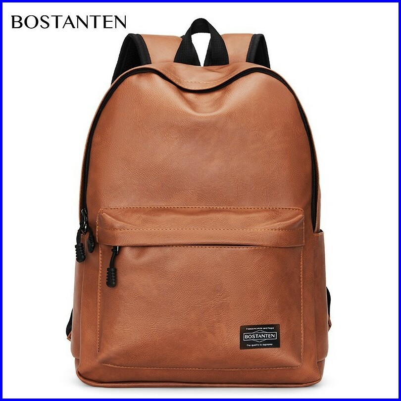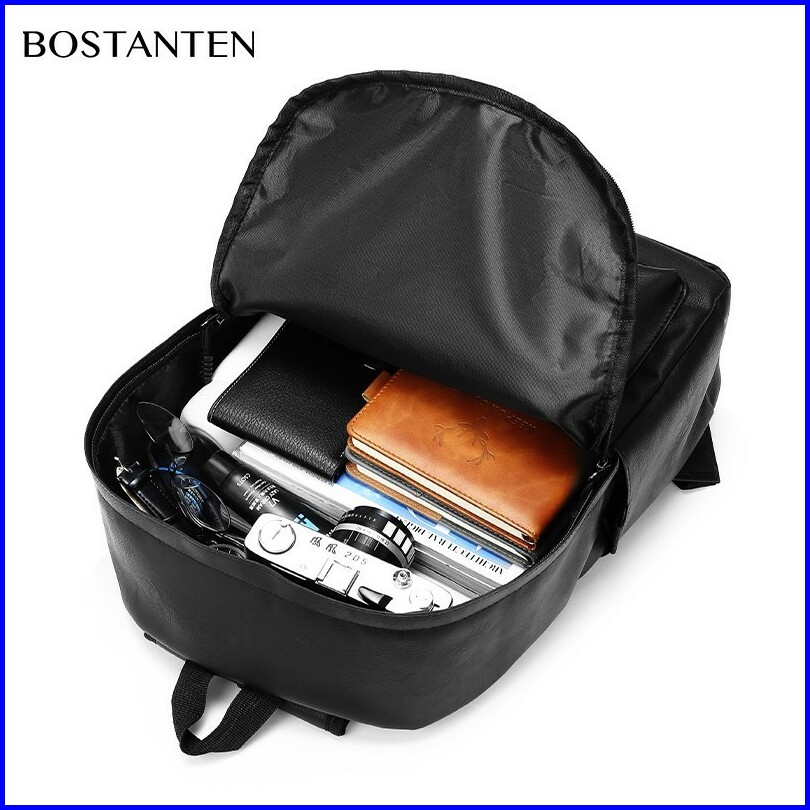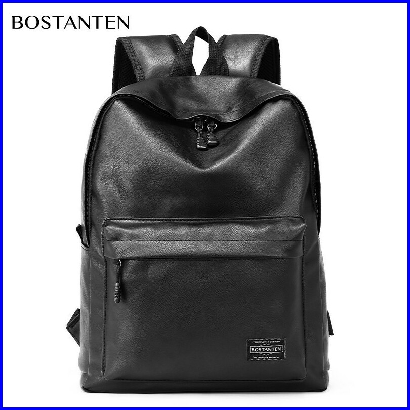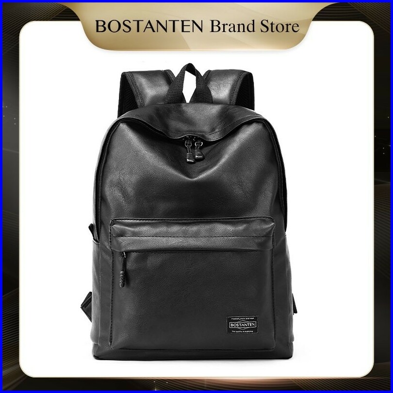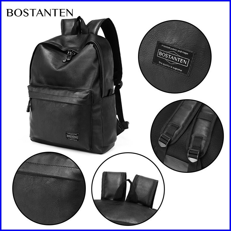 Bostanten Ransel Kasual Kulit Pu Warna Hitam Tas Sekolah Siswa Tas Kerja