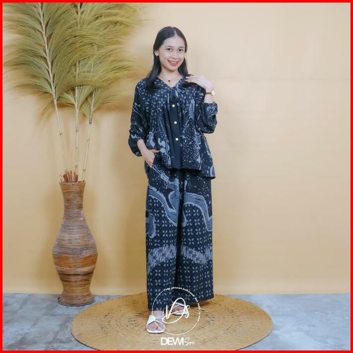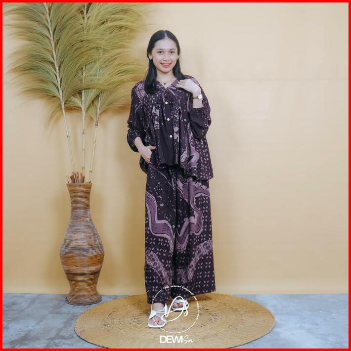 Setelan Thalia Dewi Sri Oneset Jumbo Atasan Kancing Celana Kulot Jumbo Katun Rayon Wanita Dewasa
