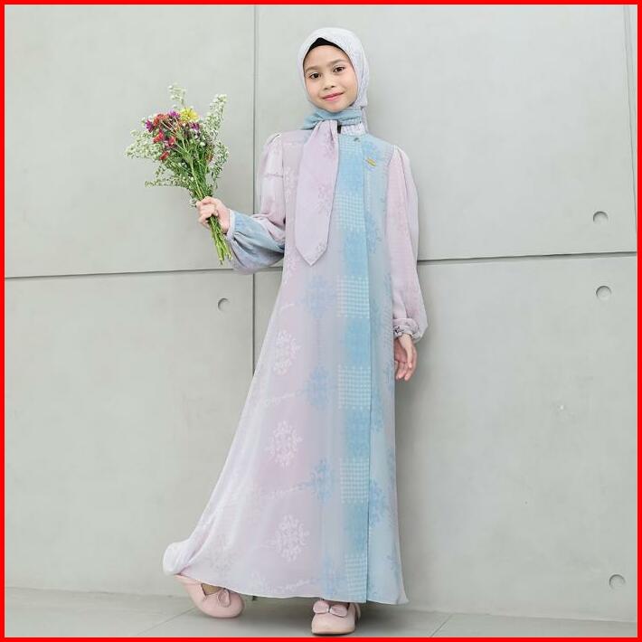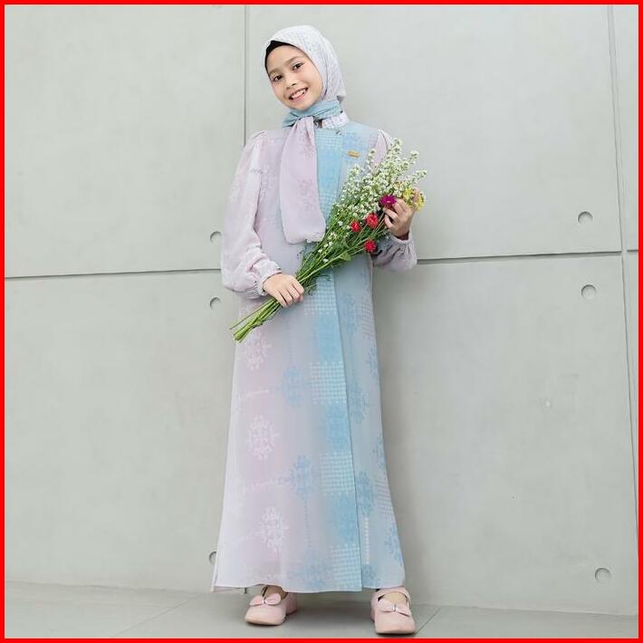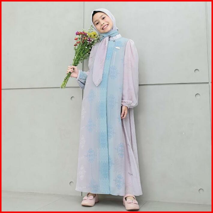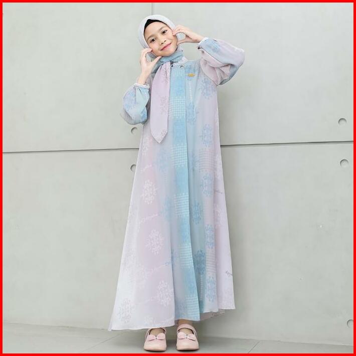 Dera Kids Special Printing Arabella Set Pashmina Segiempat Bahan Cerut Motif Umur Usia 3 4 5 6 7 8 9 10 11 12 Tahun Dres