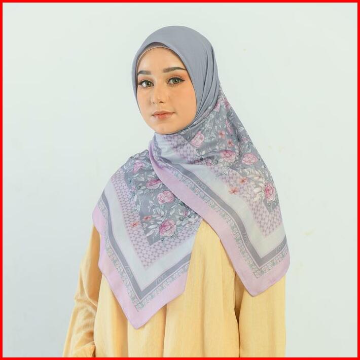 Grd B Zoya Viarosa Scarf Kerudung Hijab Segiempat Motif Bahan Voal Ukuran 115 X 115