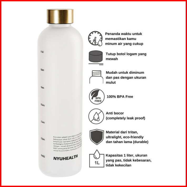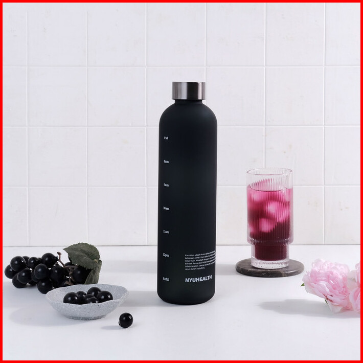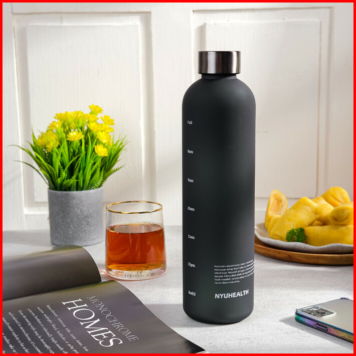 Botol Minum Motivasi Nyuhealth Bahan Tritan Warna Hitam Dust 1 Liter