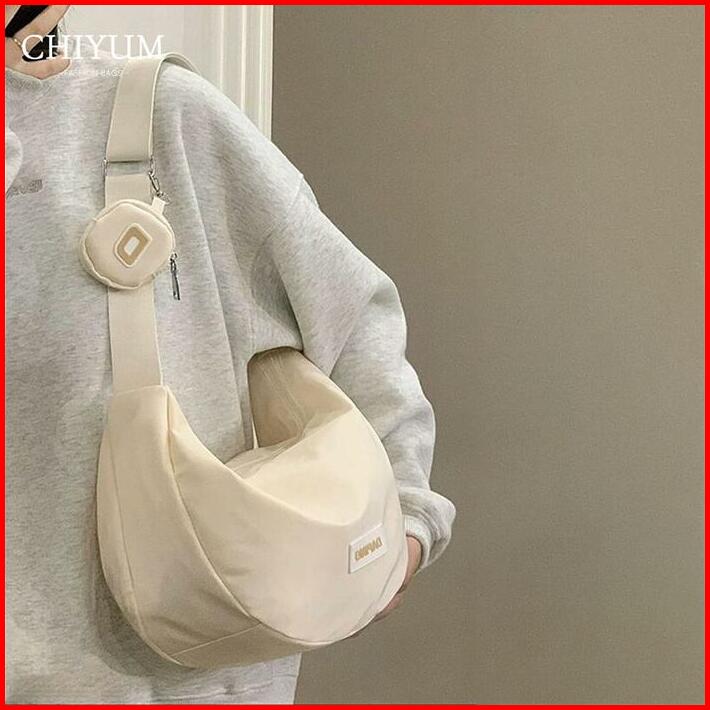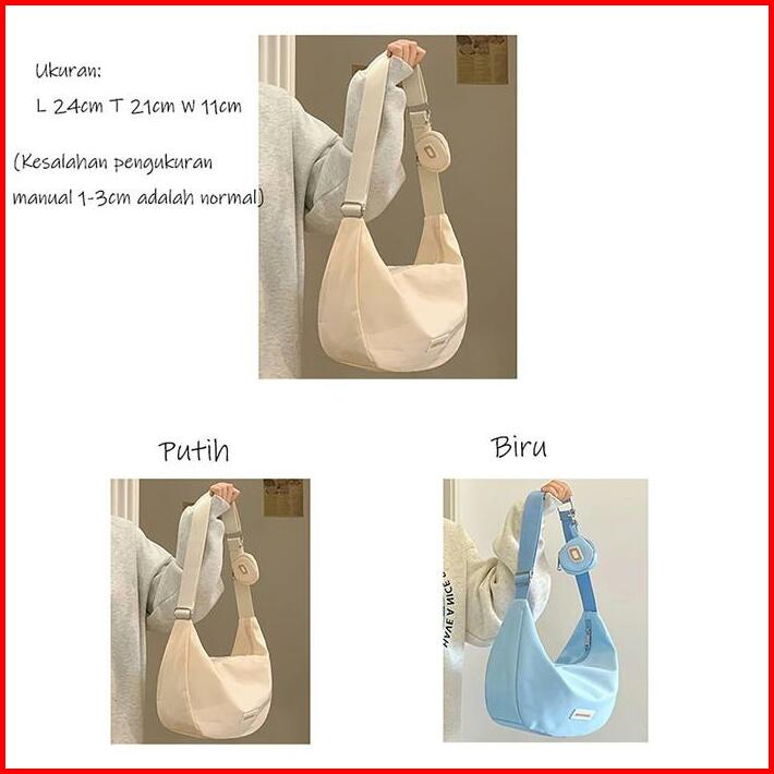 Ready Tas Selempang Wanita Nilon Korea Tas Slingbag Large Shoulder Bag Classic Tas Bahu Pelajar Tas Pangsit 2-in-1 Kapas