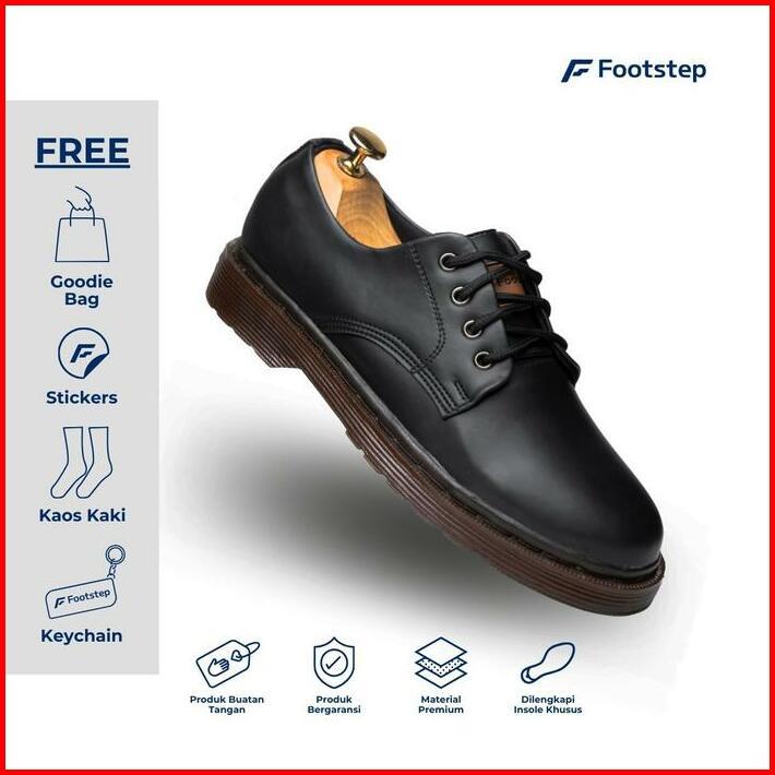 Sepatu Cowok Footstep Darma Blucher Casual Formal Shoes Pria Black Pria Black Pantofel Kerja