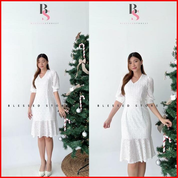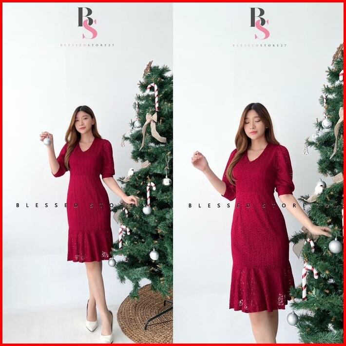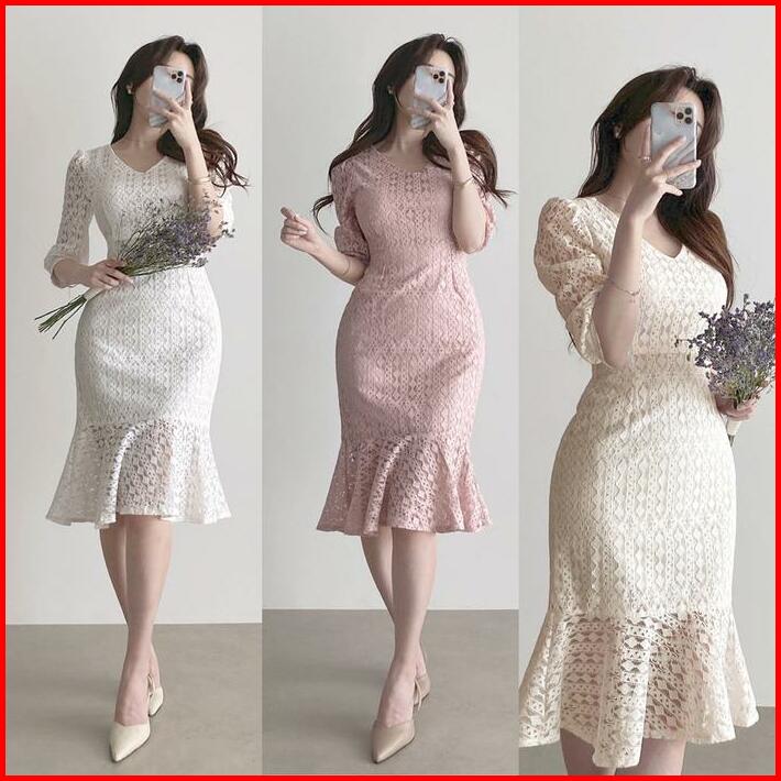 Ada Size Jumbo D0882 Monela Korean Style Lace Brocade Bodycon Vintage Midi Dress Pesta Simple