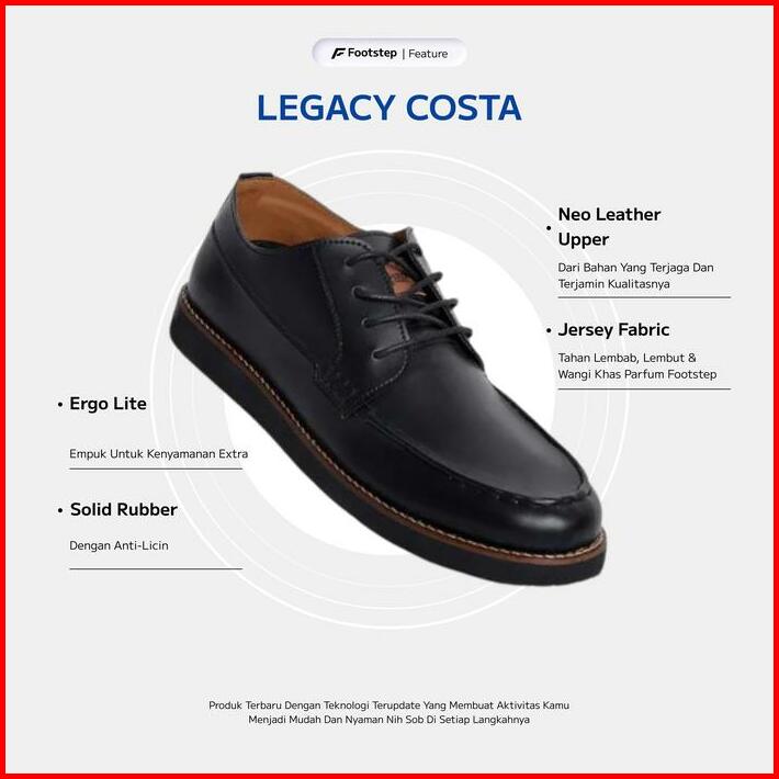 Sepatu Cowok Footstep Derby Legacy Costa Formal Shoes Black Pria Pantofel