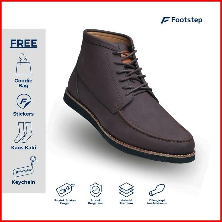 Footstep Footwear Sepatu Pria Boots Mendoza Dark Brown Original Shoes Black Kerja Hitam