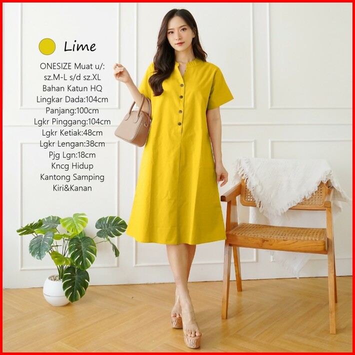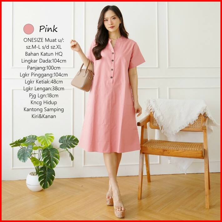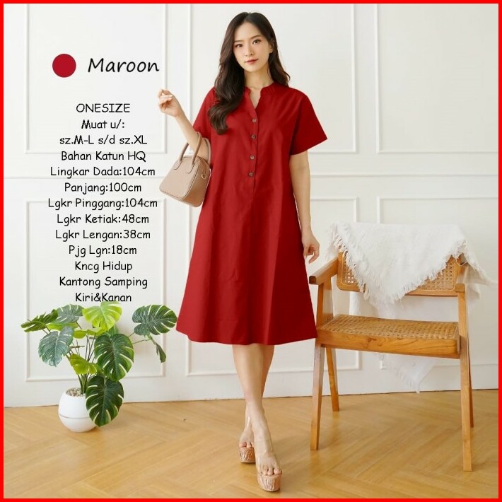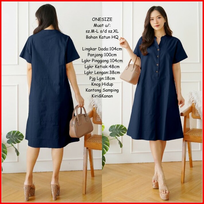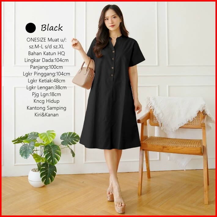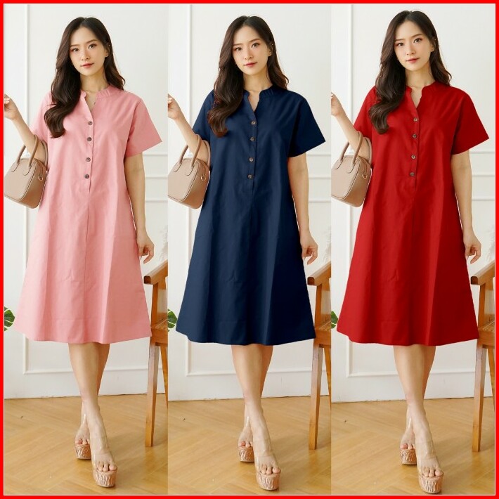 Midi Dress Wanita Polos Basic Katun Uniqlo Tebal Adem Casual Formal