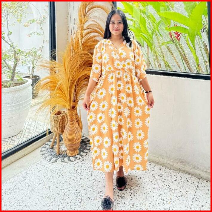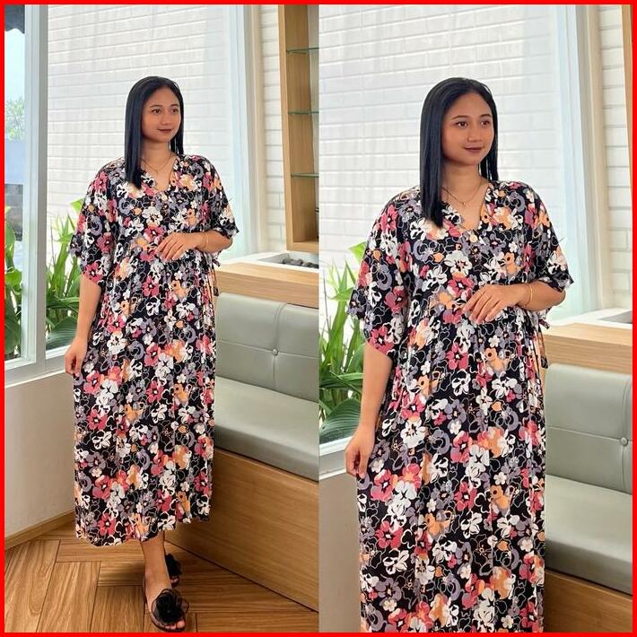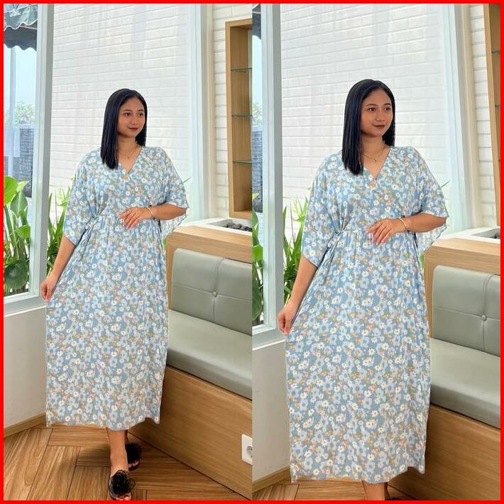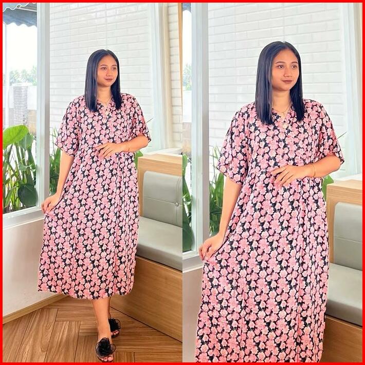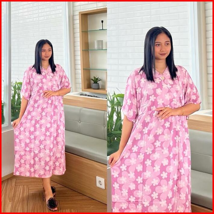 Dress Kimono Busui Tali Daster Rayon Pendek Wanita Bumil Kain Lembut Nyaman Midi Motif Tangan Pendek