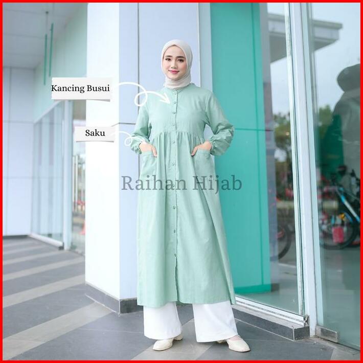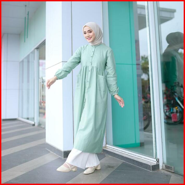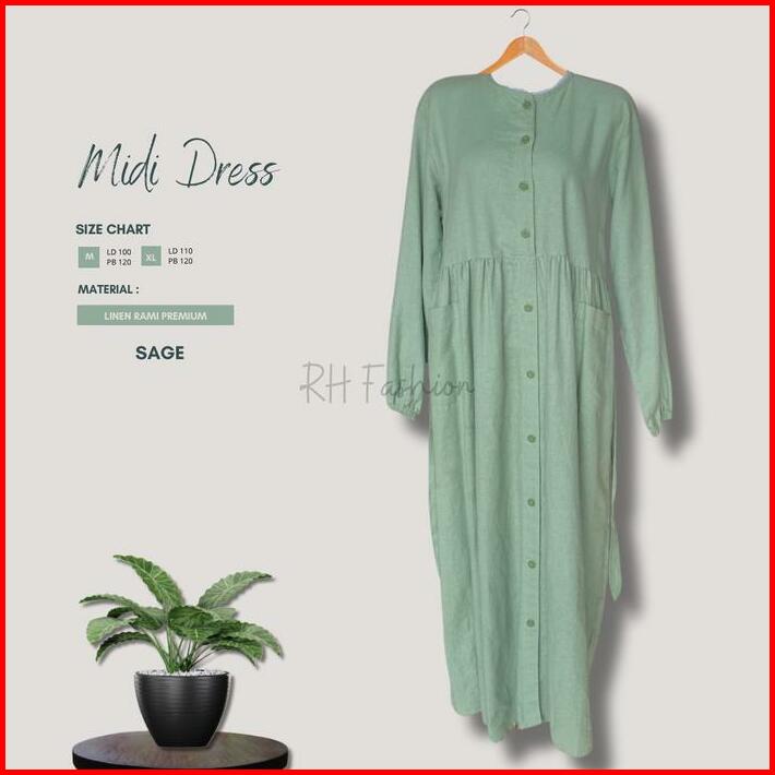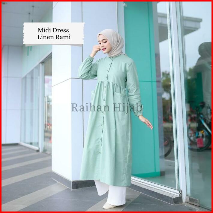 Midi Dress Allura Katun Linen Rami Casual Busui Kancing Depan Katun Muslim Wudhu Wanita Gamis Crinkle Airflow Baju Aqeel