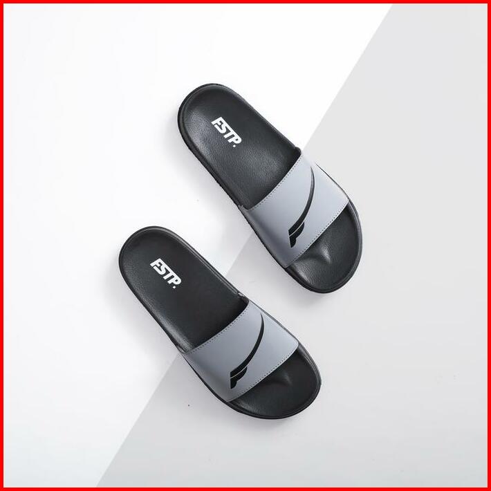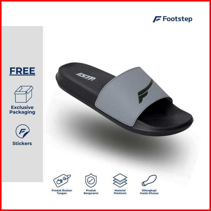 Sendal Cowok Footstep Soul Grey Slide Sandal Shoes Pria Selop Black