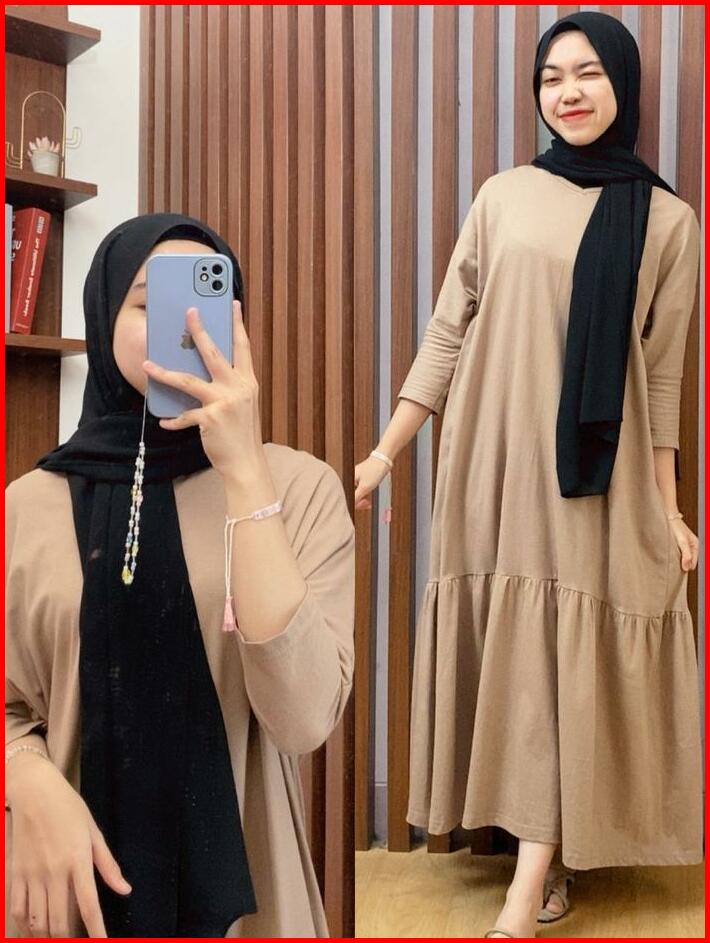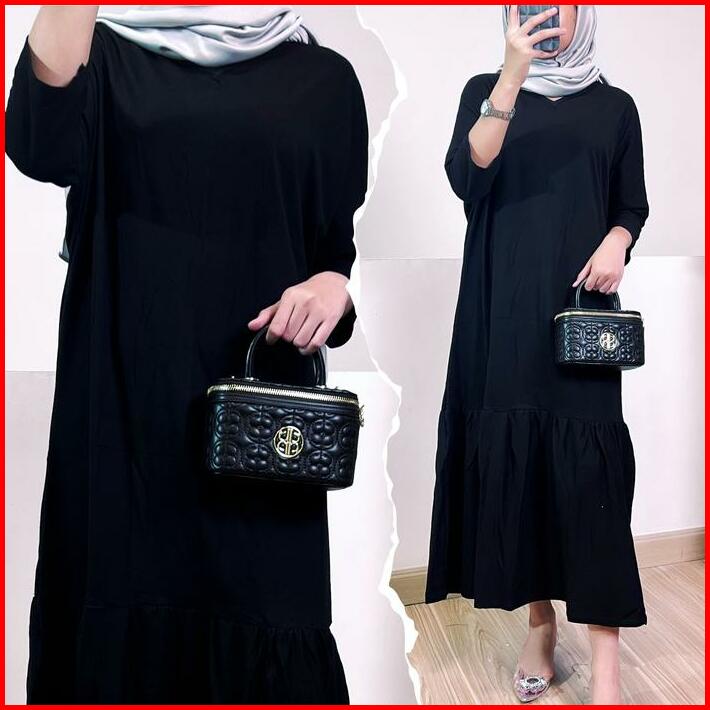Rafella Midi Dress Rempel Premium Kaos Cotton Combed Polos Wanita Ntr Basic Fit Panjang Nyaman