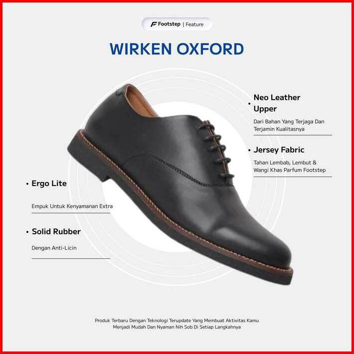 Sepatu Cowok Footstep Wirken Oxford Formal Shoes Pria Black Kerja Pantofel Hitam