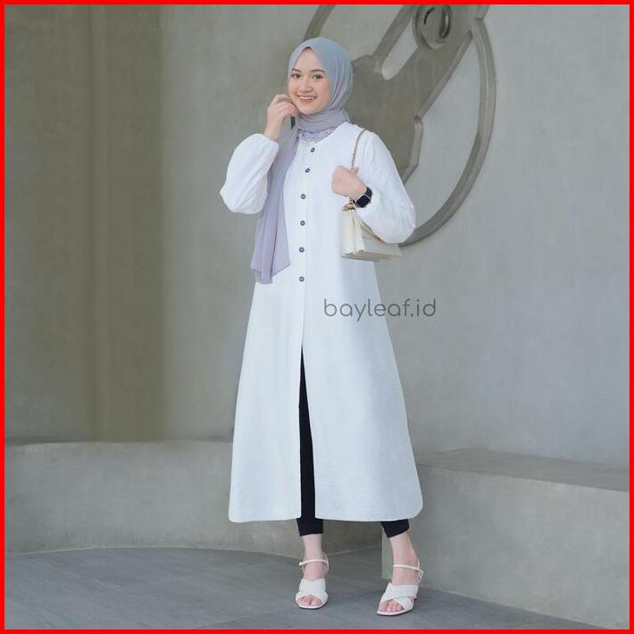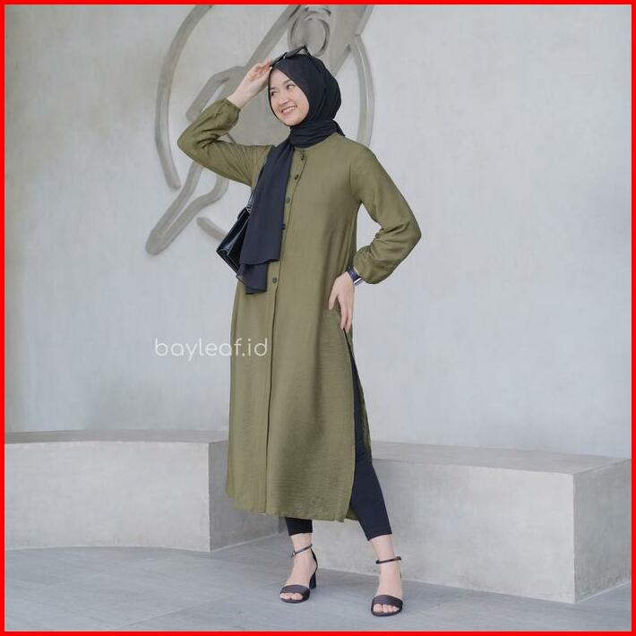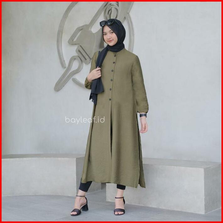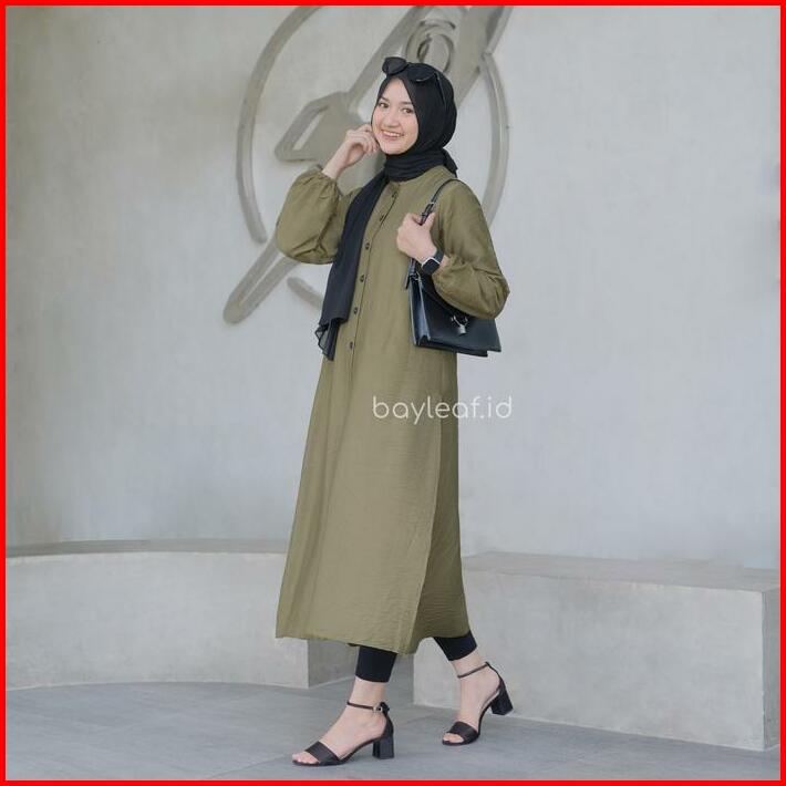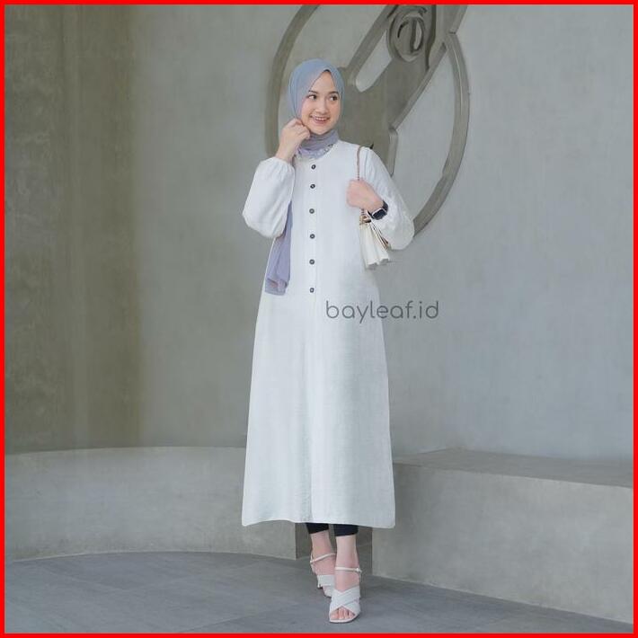 Bayleaf.id Syifa Daisy Basic Midress Linen Midi Dress Busui Wanita Gamis Linen Gamis Busui