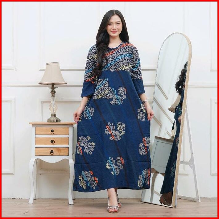Dress Sabrinah Cap Rayon Tebal Wanita Adem Nyaman Baju Casual Motif Bunga Gaun Muslim Gamis Midi Busui Tangan 42 Cm