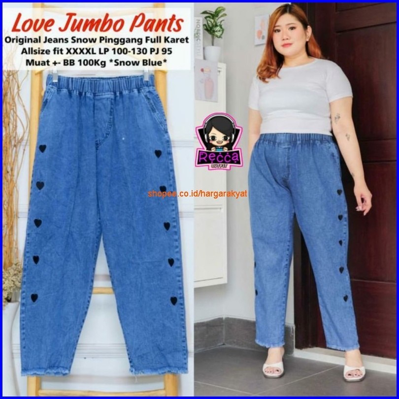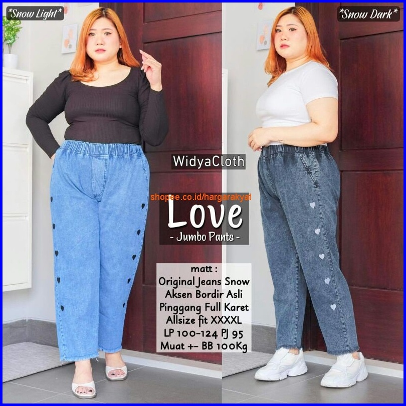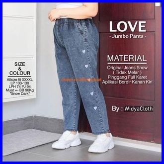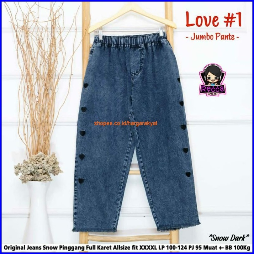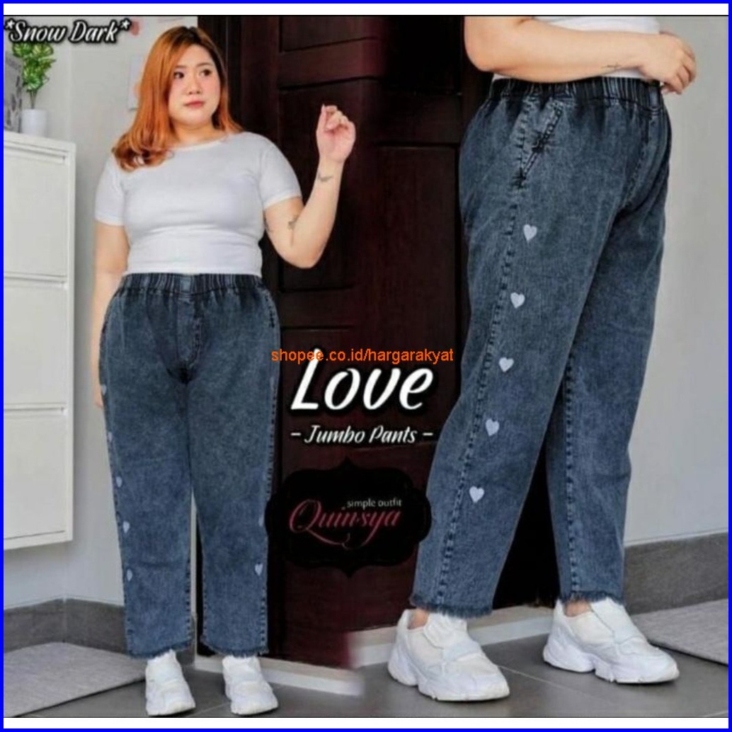 Love Pants Celana Jumbo Celana Boyfriend Jeans Wanita Pinggang Full Karet Snow