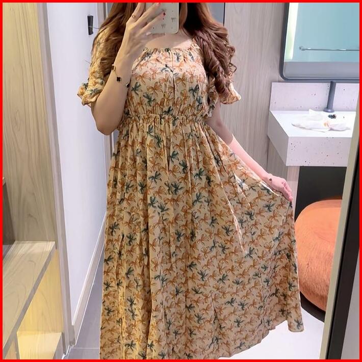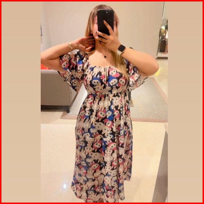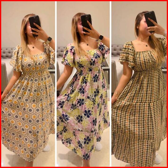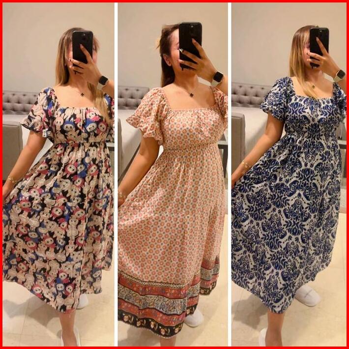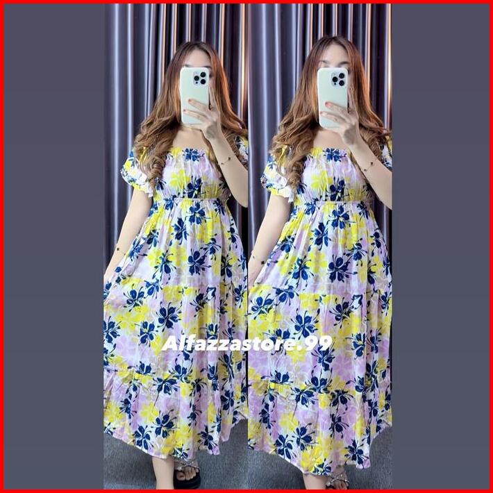 Alfazza Bella Dress Midi Wanita Rayon Viscose Motif Casual Baju Pantai Busui Bumil