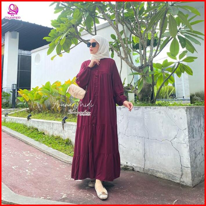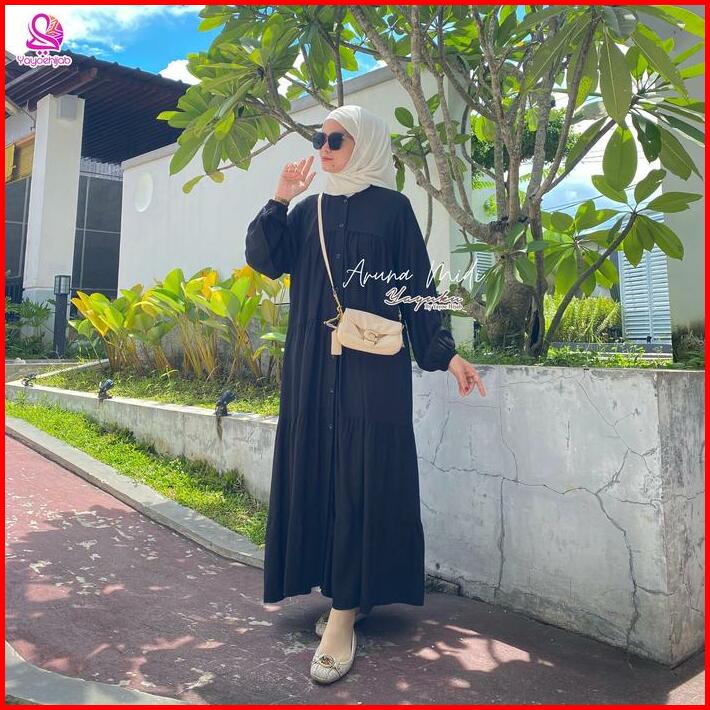 Aruna Midi Dress Bahan Rayon Twill Fashion Muslim Polos Yayuku By Yayoe Hijab Wanita Gamis Katun