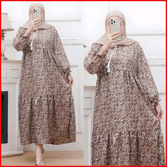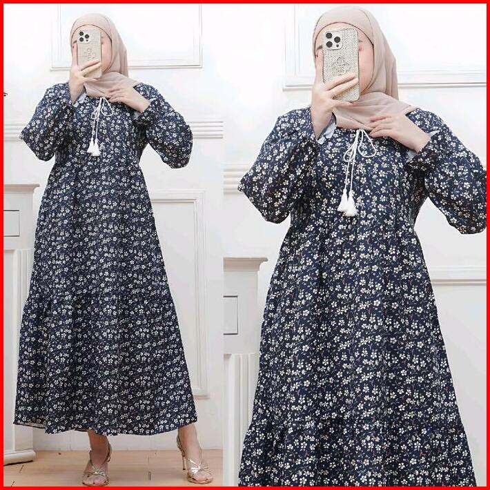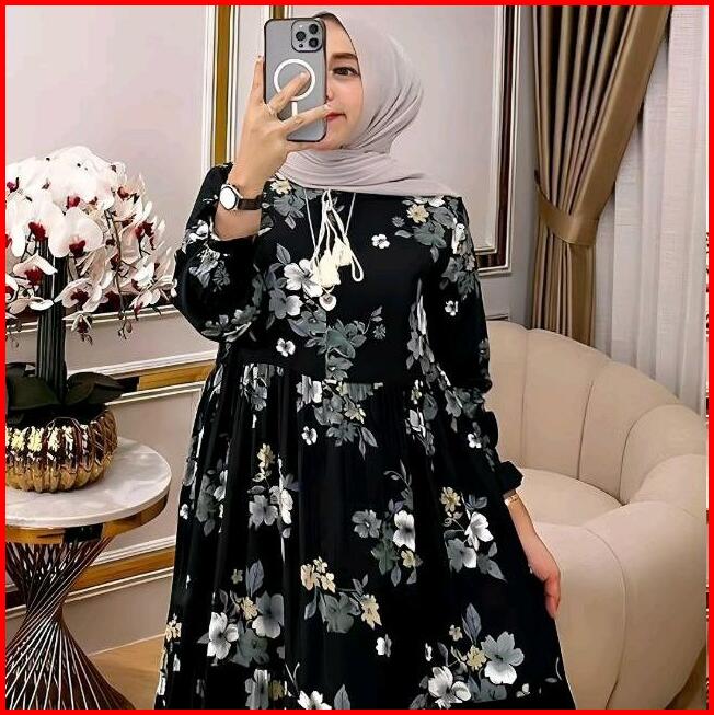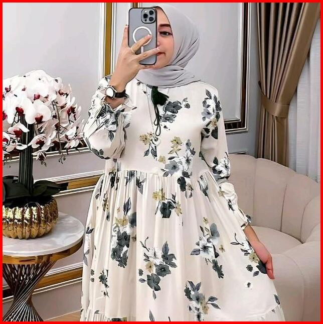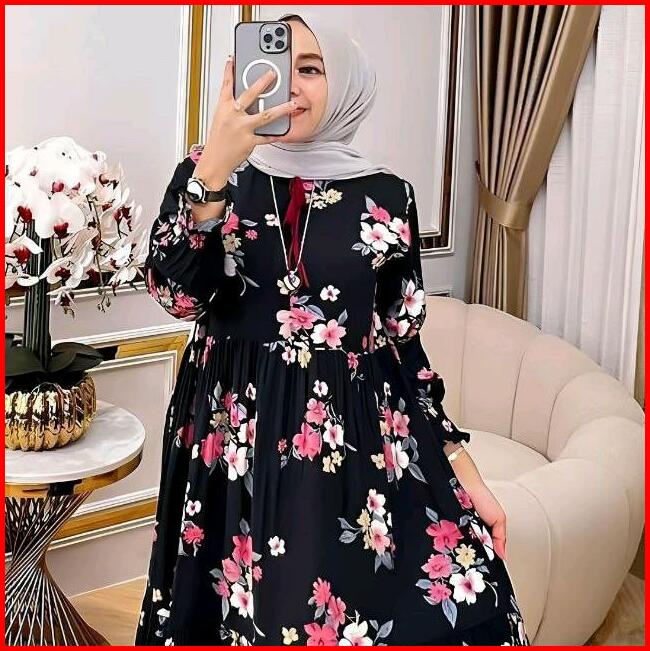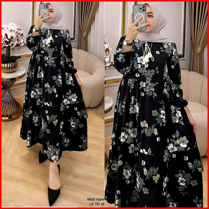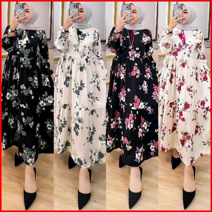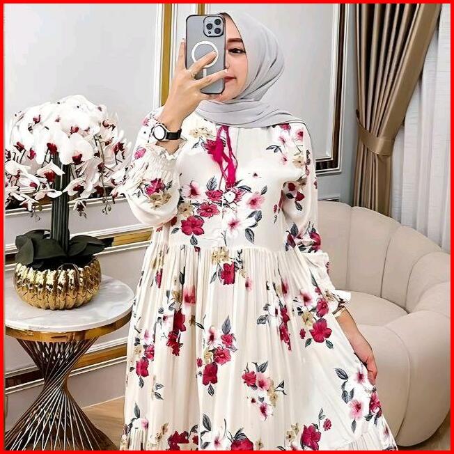 Gamis Rose Midi Dress Rayon Terbaru 2024 Dress Bunga Sakura Bahan Rayon Tebel Halus Adem Gamis Midi Terbaru Busui Baju B