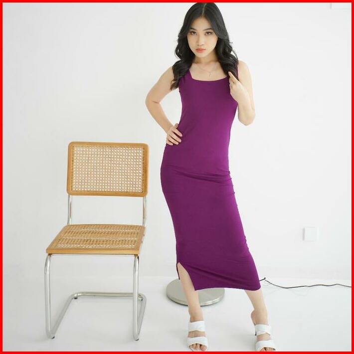 Nzinga Eva Midi Bodycon Dress Midi Dress Wanita Slim-fitting Polos Lembut Nyaman