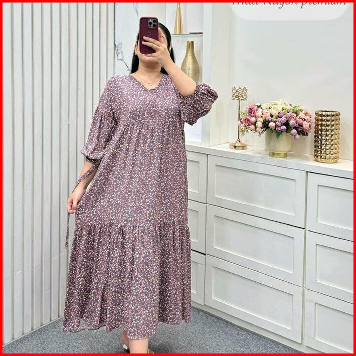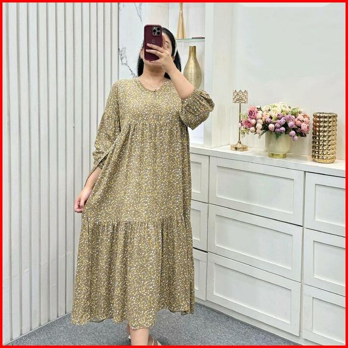 Annisa Fashion Midi Dress Wanita Cantik Motif Bunga Jumbo Kekinian