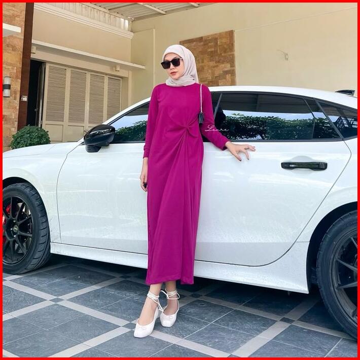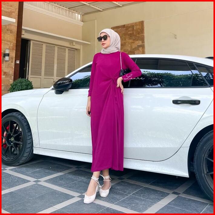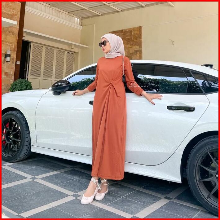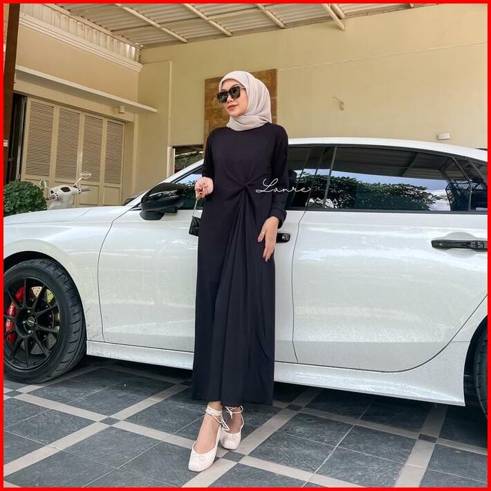 Gea Midi Dress Bahan Cotton Combed Kaos-gamis Hitam Cantik Elegan Wanita Muslim Atasan Panjang High Kerah