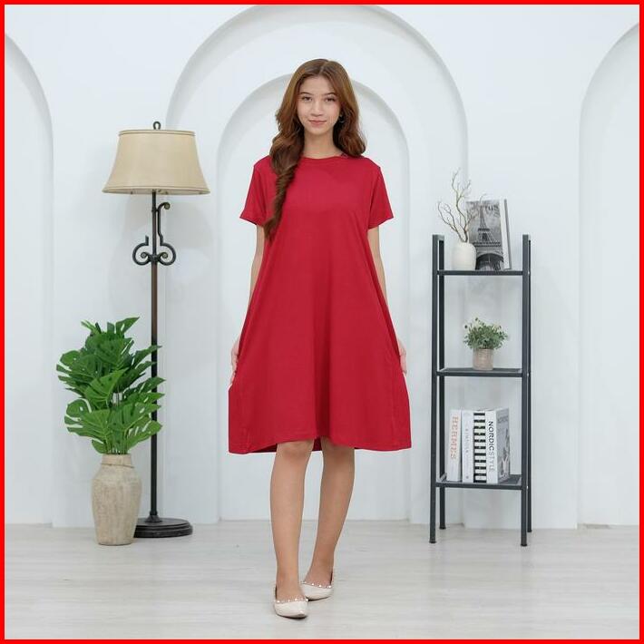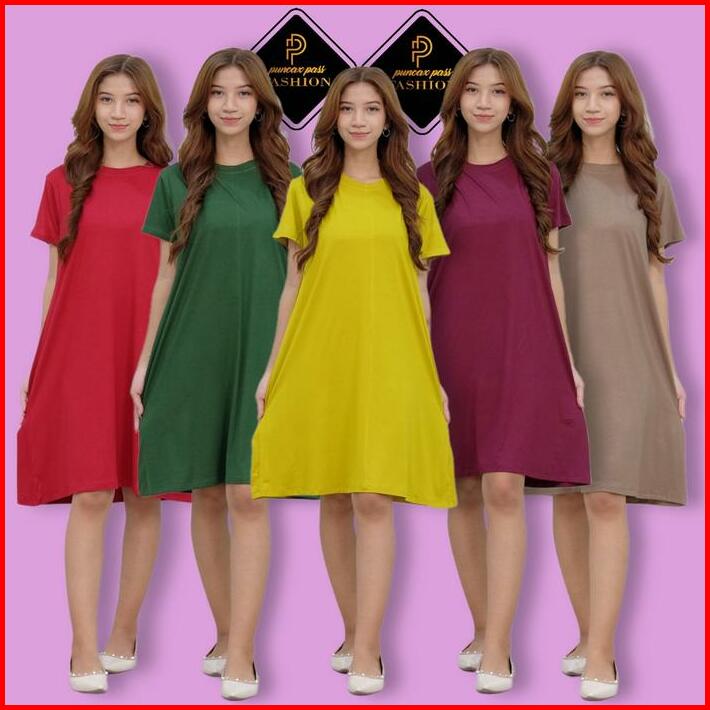 Pp Fashion-dress Mola Oversize Dress Wanita Jumbo Polos Daster Kaos Spandek Rayon Murah Midi Dewasa Lembut Nyaman Untuk