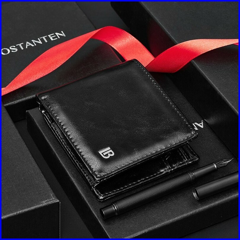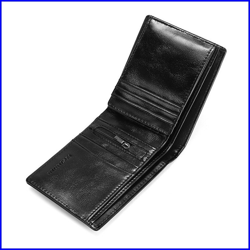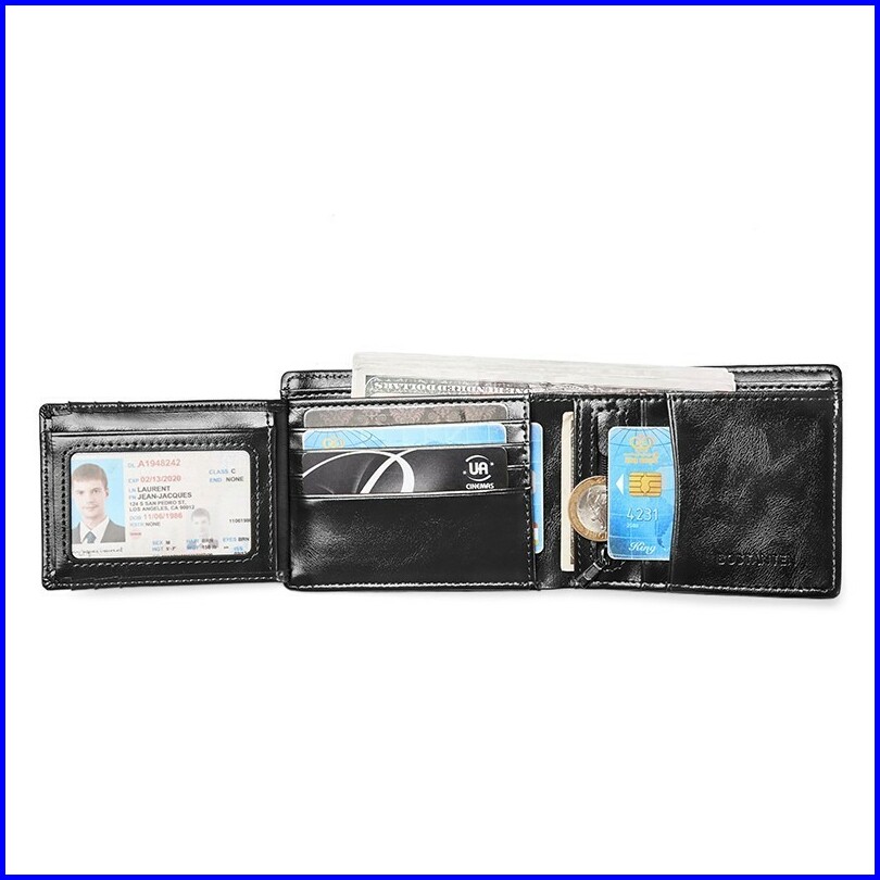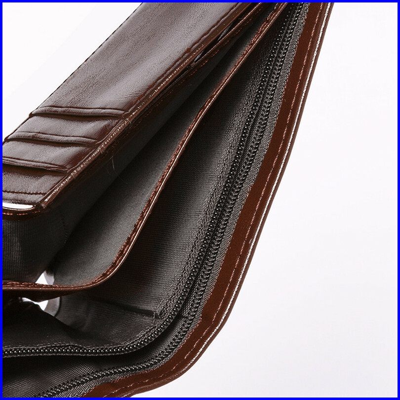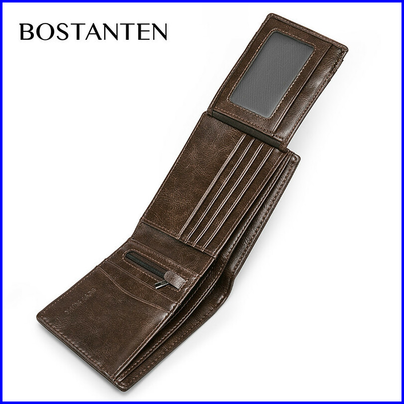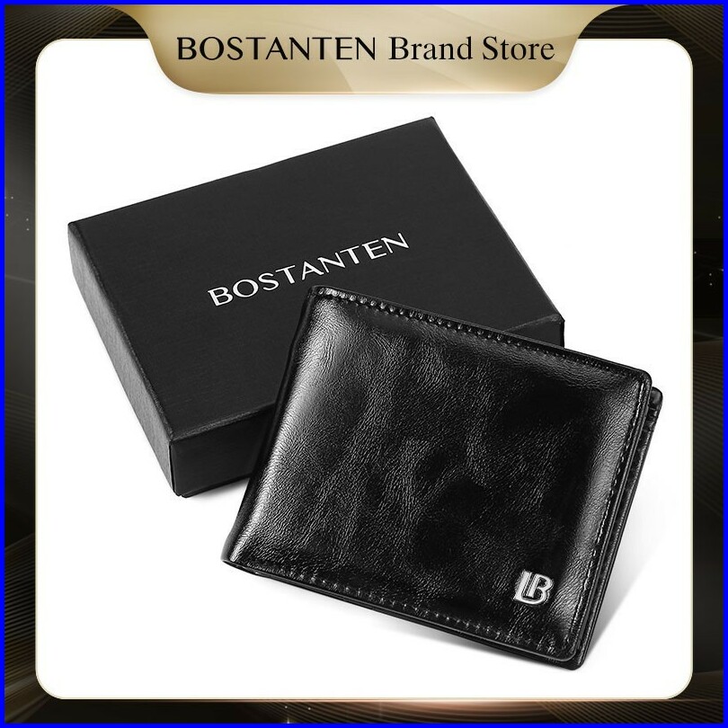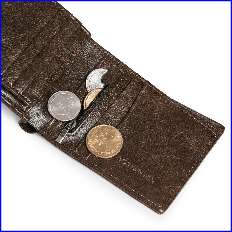 Bostanten Dompet Lipat Pria Koin Ritleting Bahan Kulit Pu Hitam Kopi Coklat