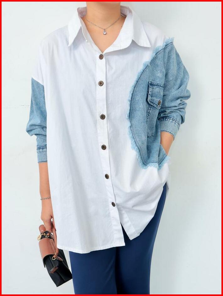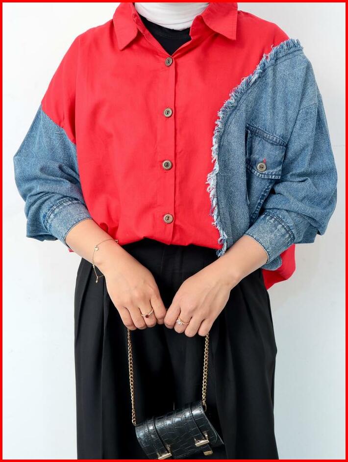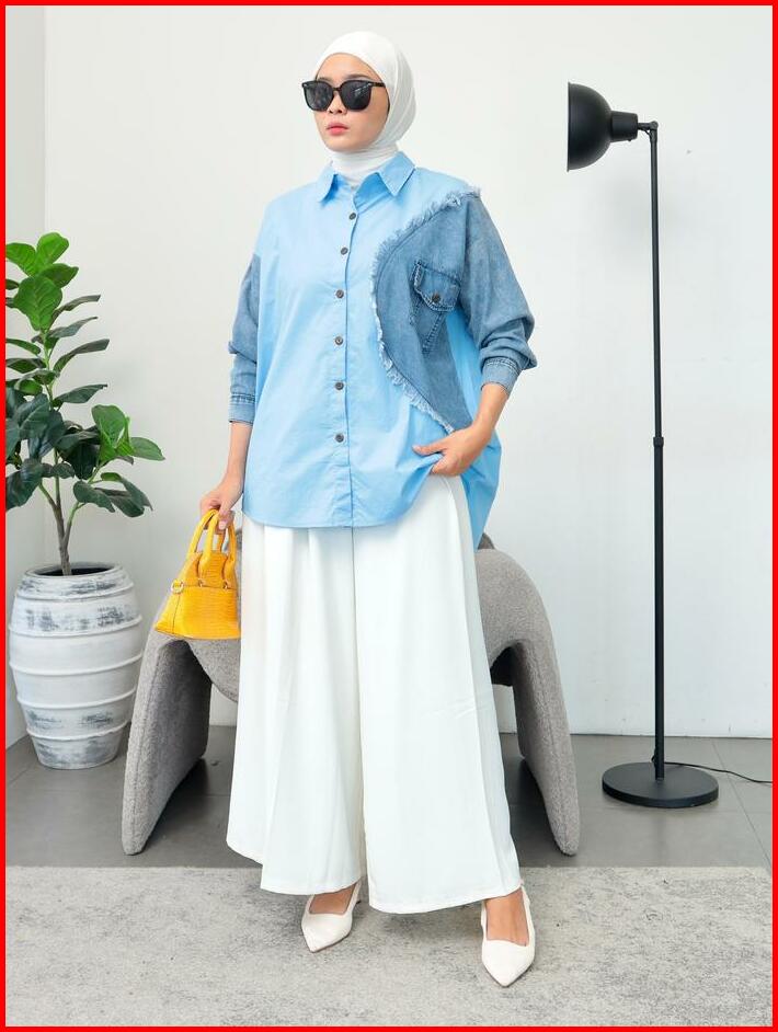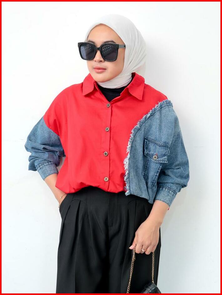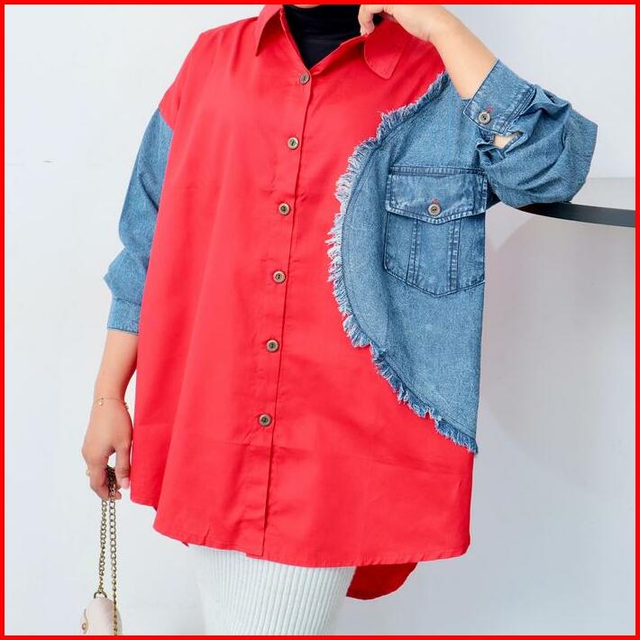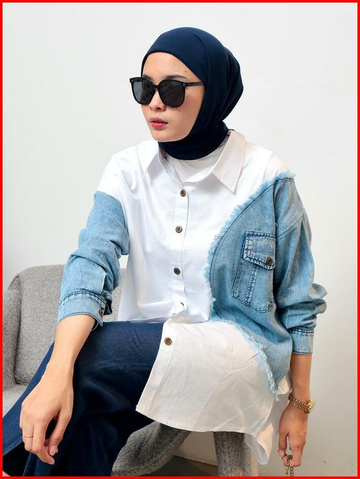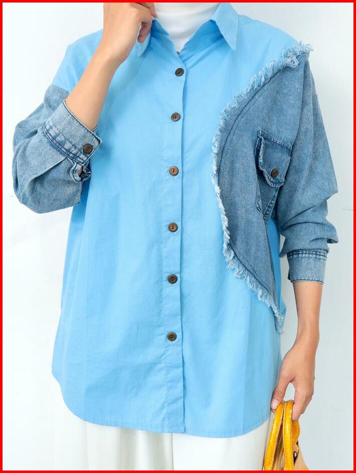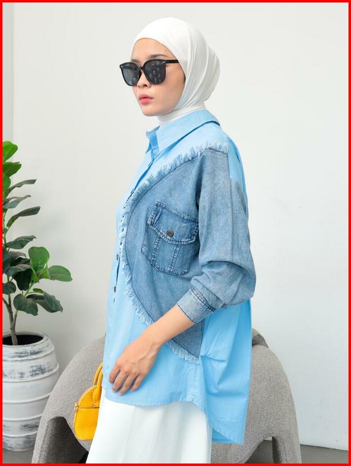 Kemeja Wanita Lengan Panjang Oversize Denim Katun Rawis Terbaru