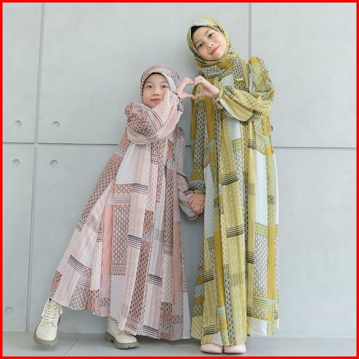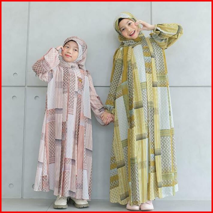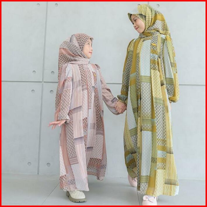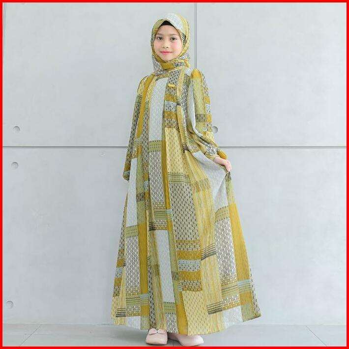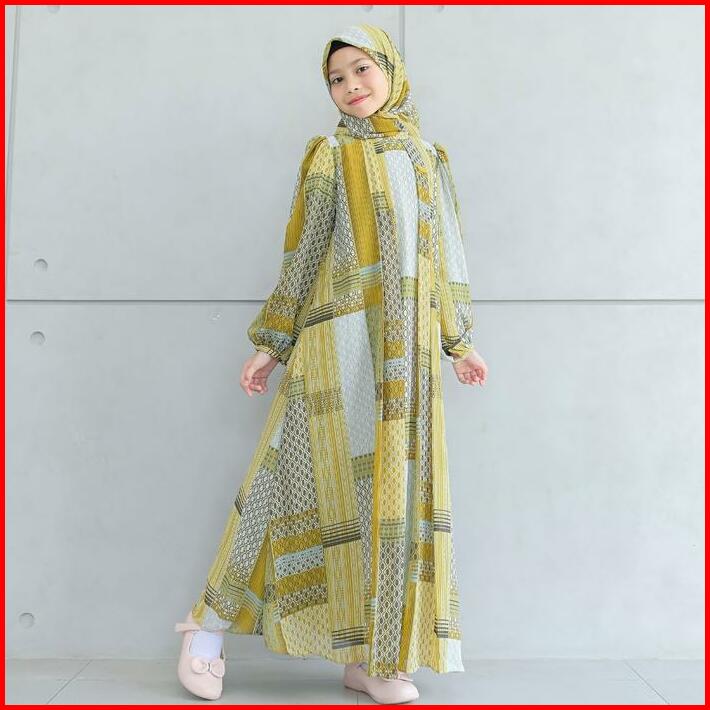 Dera Kids Series 42 Fatimah Set Pashmina Segiempat Bahan Cerut Motif Umur Usia 3 4 5 6 7 8 9 10 11 12 Tahun Dress Gamis