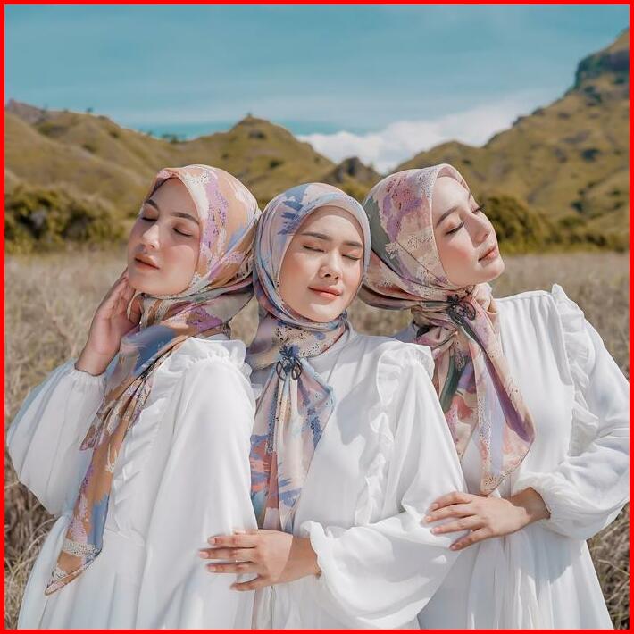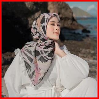 Koyu Hijab Segiempat Motif Viney Abstrak Beach Sand
