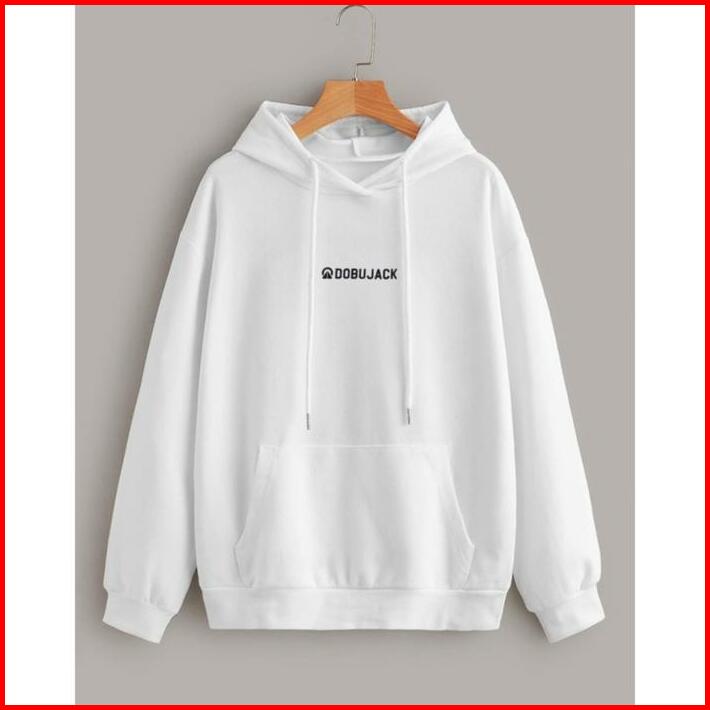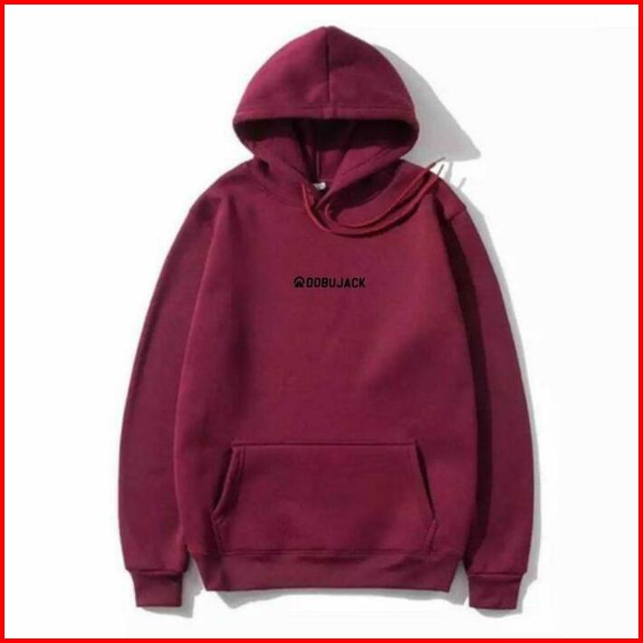 Hoodie Dobujack Fleece Unisex Hitam Teks Hitam High Quality Hoodie Distro Basic Premium