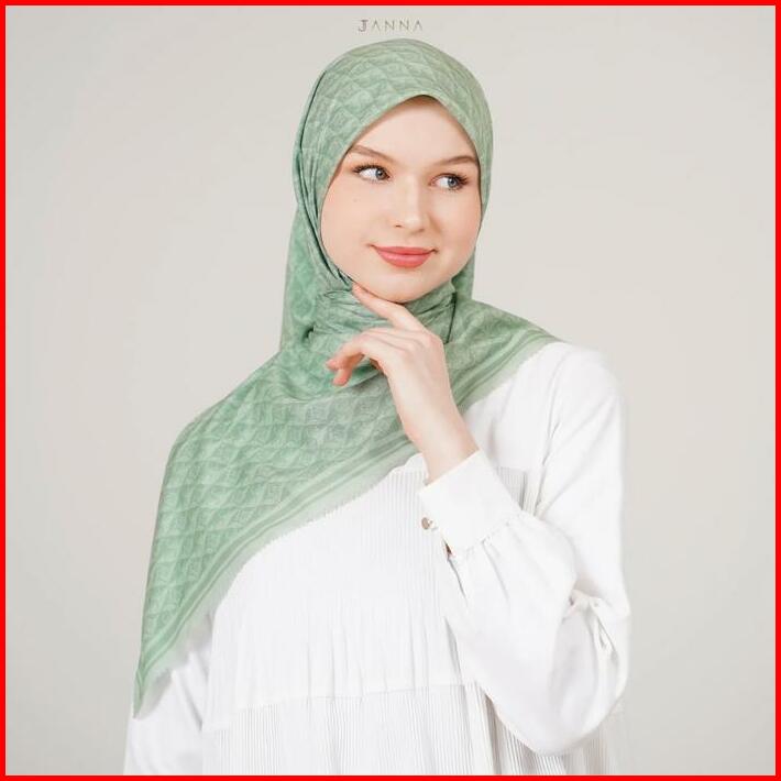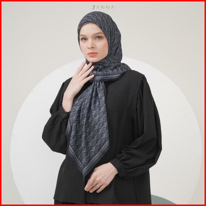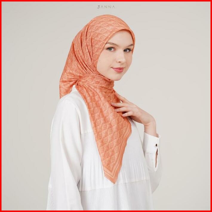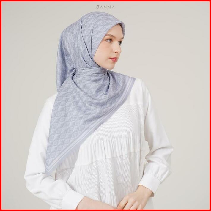 Janna Monogram 2.0 Hijab Motif Lasercut Segiempat Premium Voal Square Muslim Kerudung Printing Logo Basic Mewah Nyaman