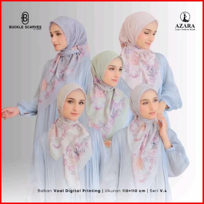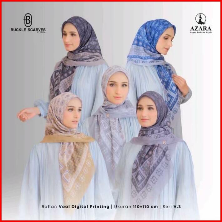 Hijab Buckle Scarves Pouch Isi 5 Segiempat Motif Printing Voal Muslim Kerudung