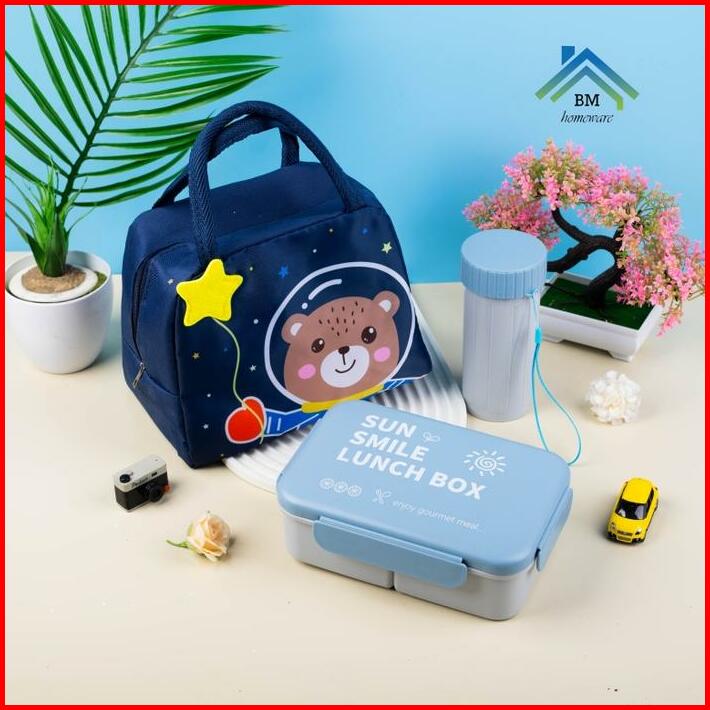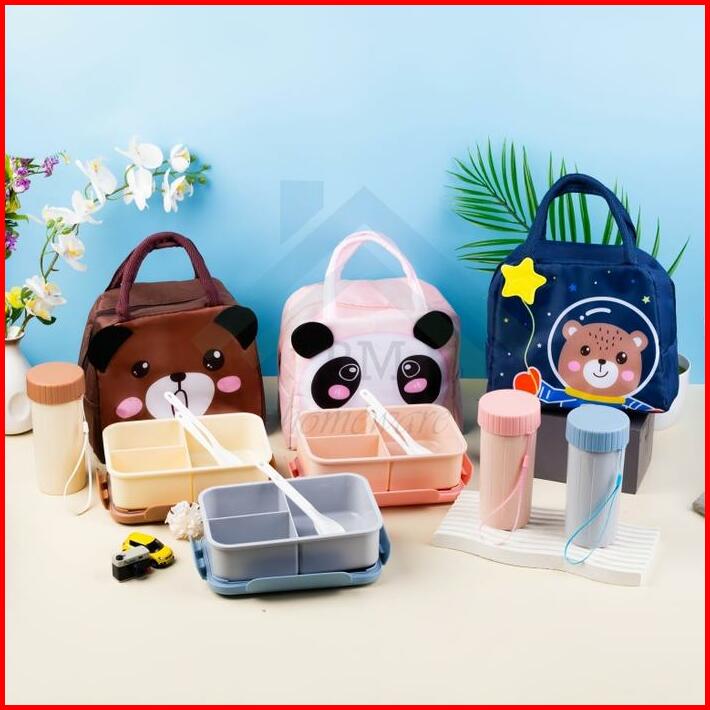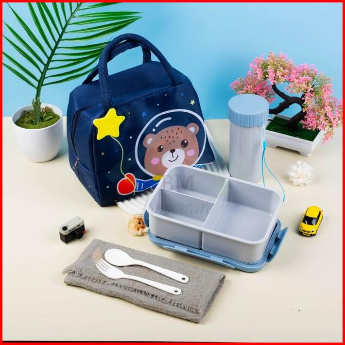 Kotak Makan Set Botol Minum Tas Bekal 3in1 Lunch Box Botol Minum Tas Bekal