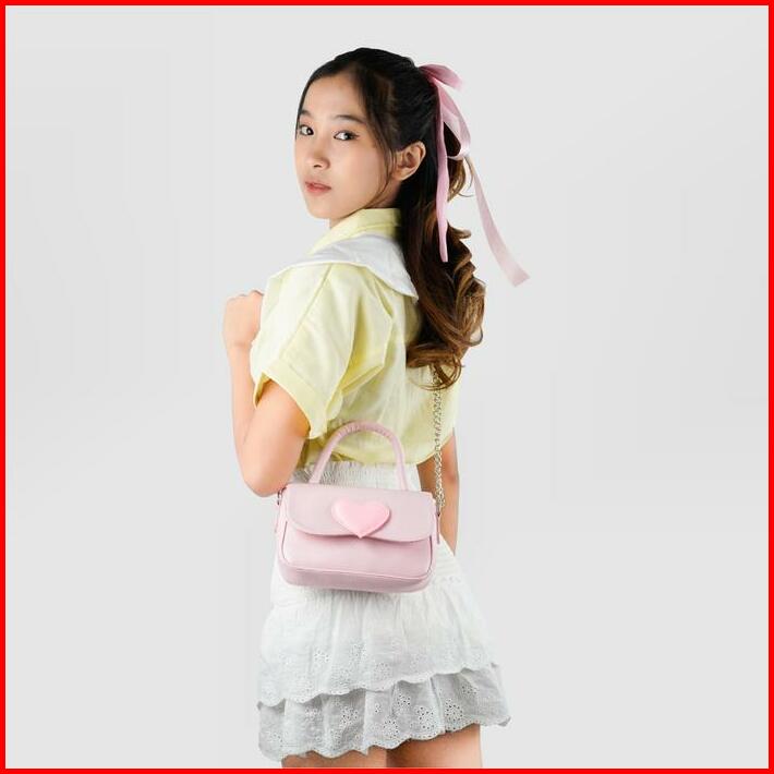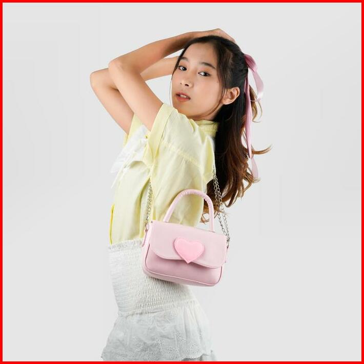 Septha Tas Selempang Bahu Love Slingbag Rantai Cewek Wanita Pink Remaja Handbag Import Cute Korean Style Polos Kulit