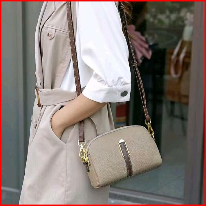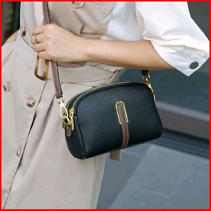 Tas Selempang Dan Bahu Wanita Multifungsi Sling Bag Cewek Kekinian Kulit Pu Hitam