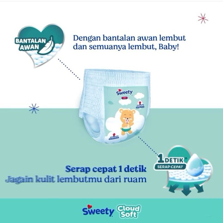 SWEETY SILVER Pant Pants M60 M 60 Popok Cloud Soft Celana Sekali Pakai Diaper Baby Bayi Diapers Promo Original Murah Ter