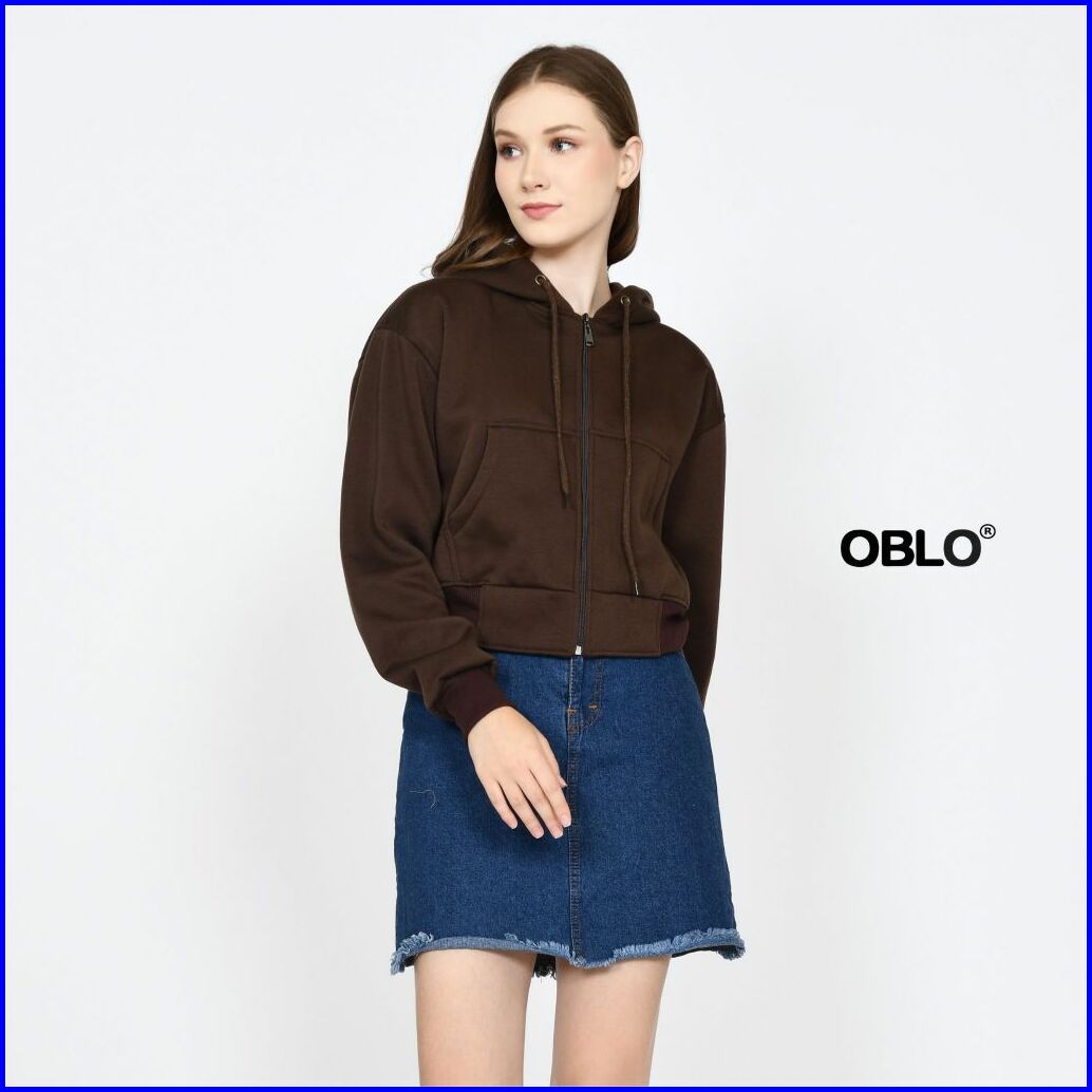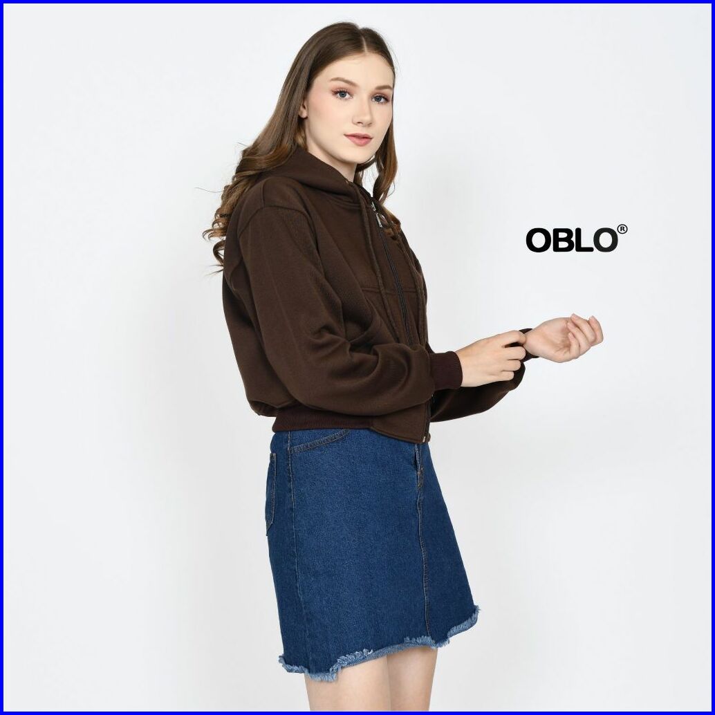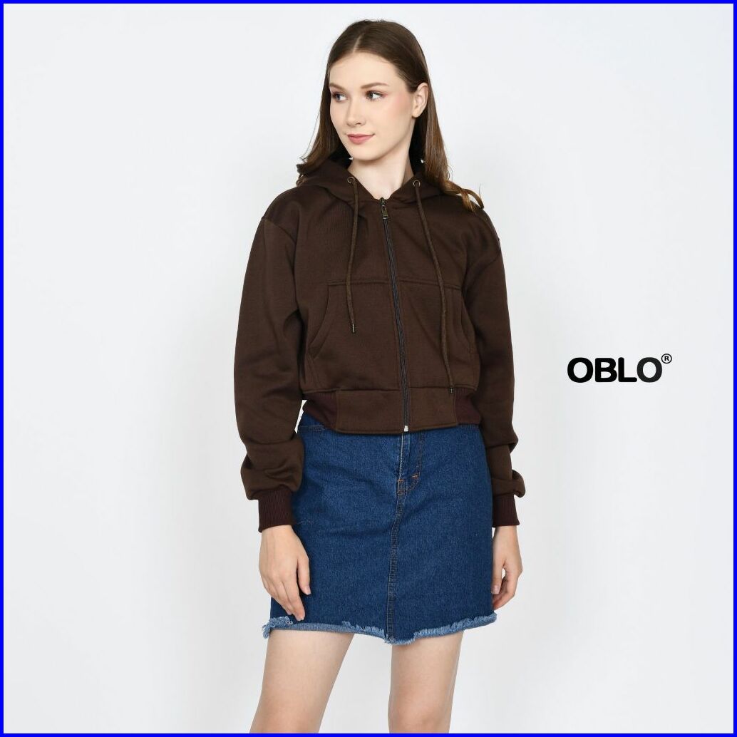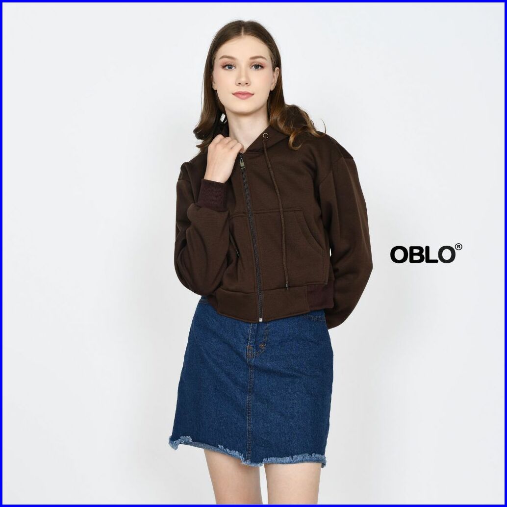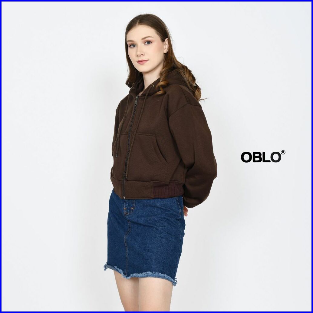 Oblo Basic Hoodie Zipper Crop Polos Jaket Jaket Hoodie Crop Polos Wanita