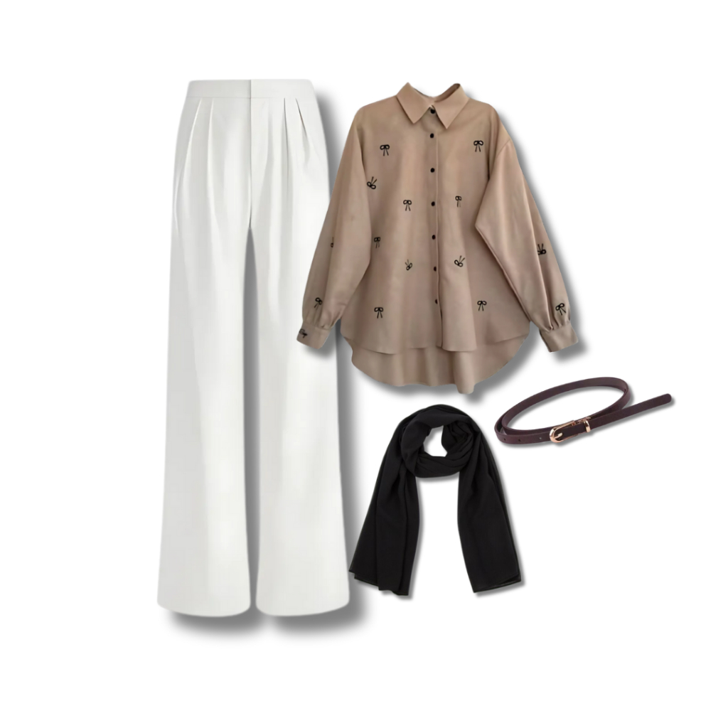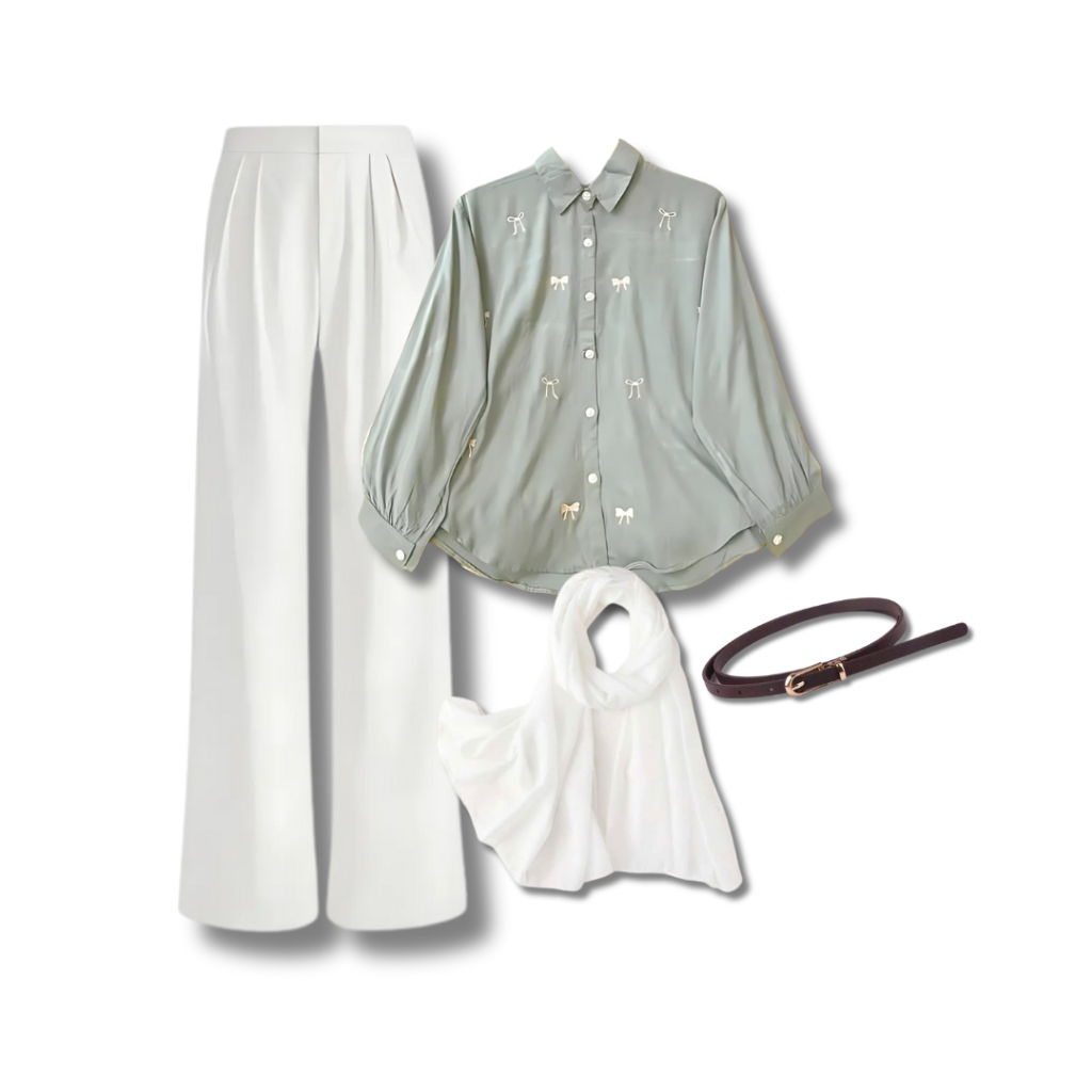 4IN1 Setelan Wanita Korean Style | Blouse + Hijab + Celana Knit + Belt | Outfit Kekinian Terbaru