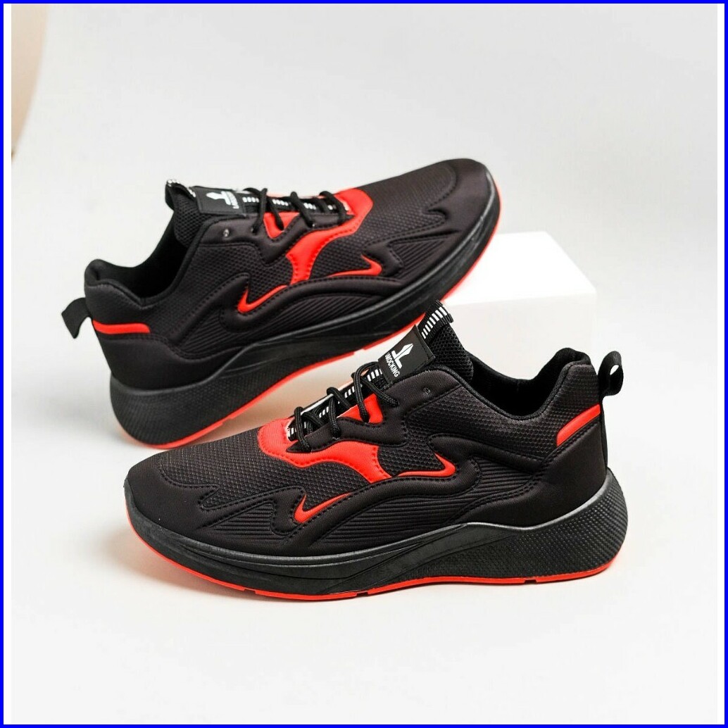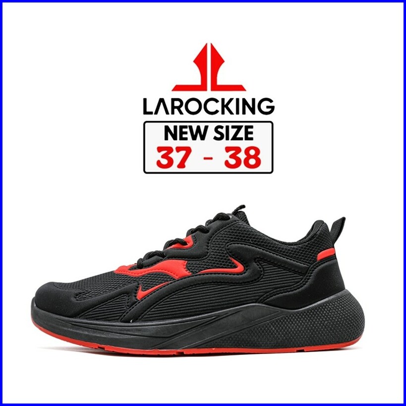 Larocking - Artemis Hitam Merah Sepatu Sneakers Running Gym Shoes