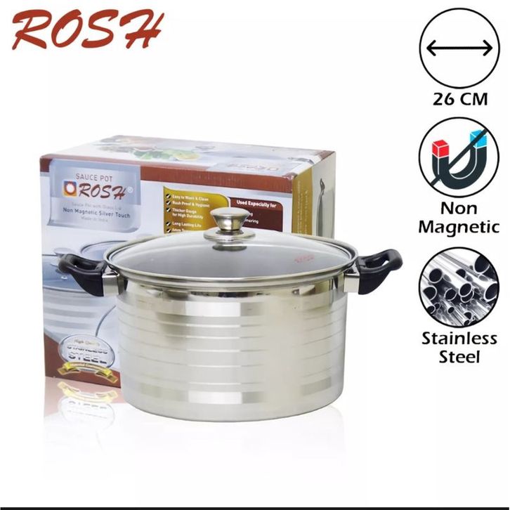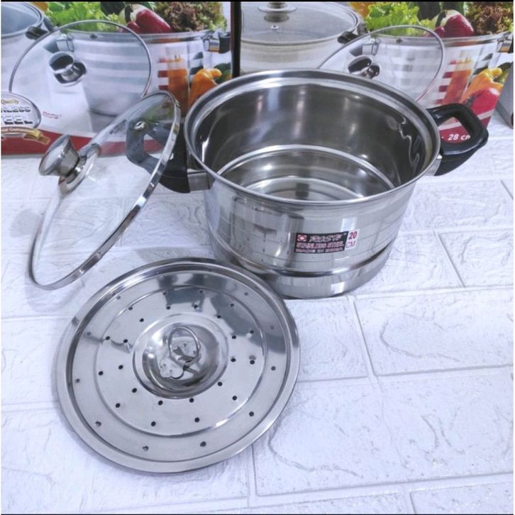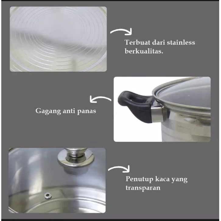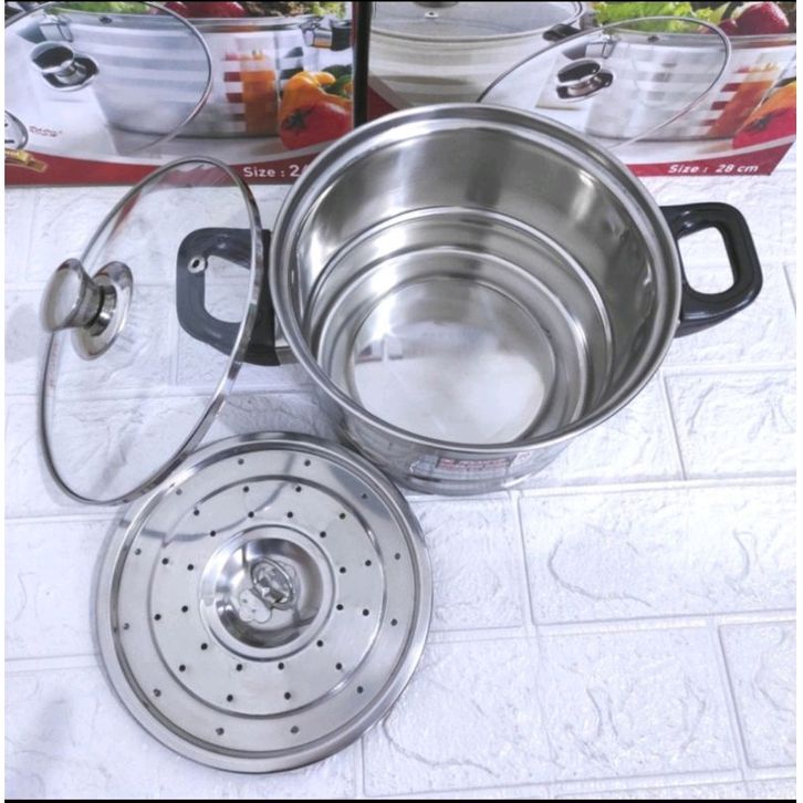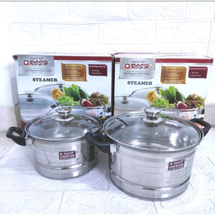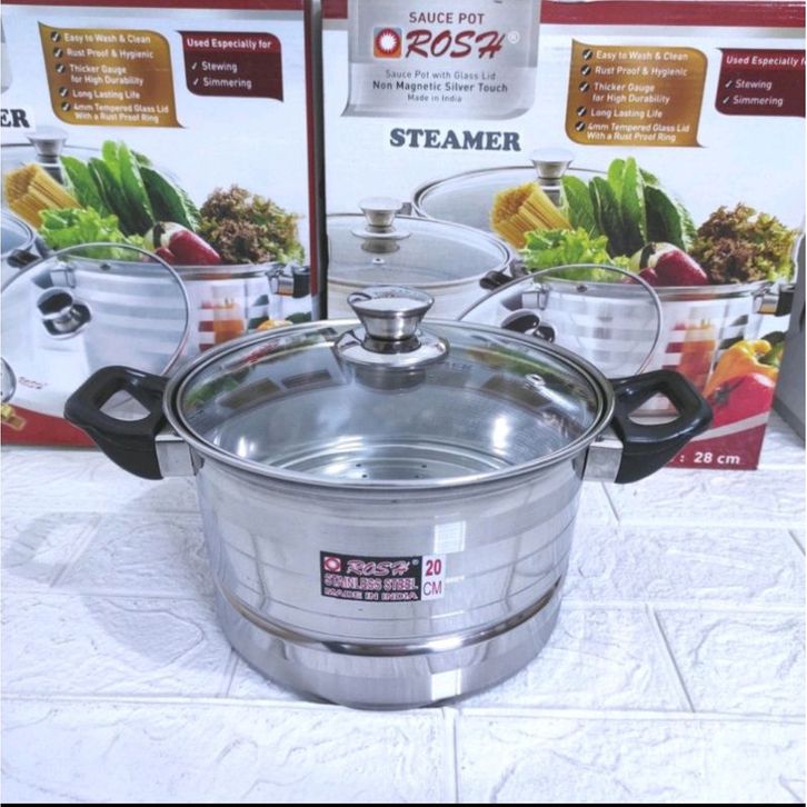 Panci Dandang Kukus Panci Kukus Stainless Tutup Kaca Panci ROSH Sauce Pot Steamer 20cm 22cm 24cm 26cm 28cm ORIGINAL