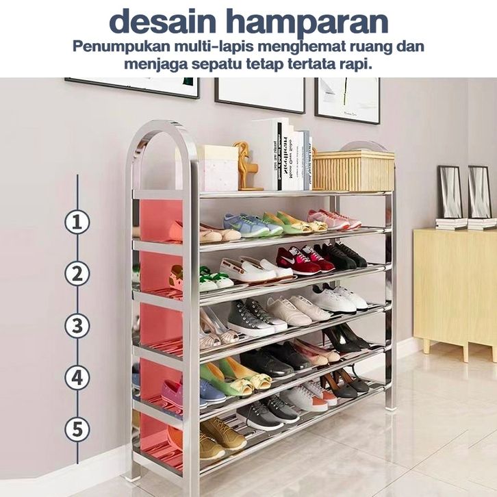 Rak Sepatu Model Sekarang Susun Serbaguna Minimalis 5&6 Tingkat Bahan Stainless Steel Tempat Sepatu Sendal Besi