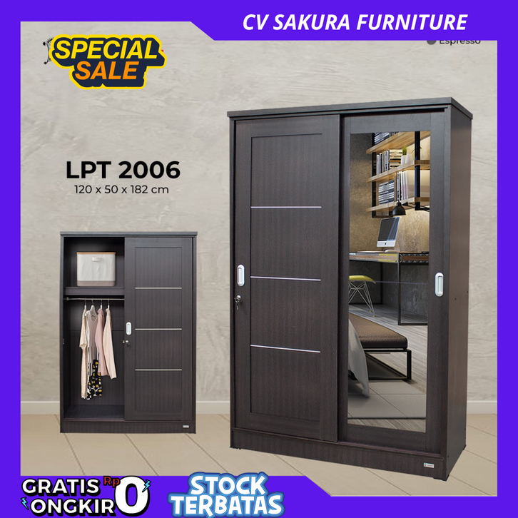 Lemari sliding lemari pakaian 2 pintu minimalis terbaru Ukuran 120 x 50 x 182 cm