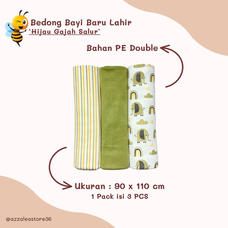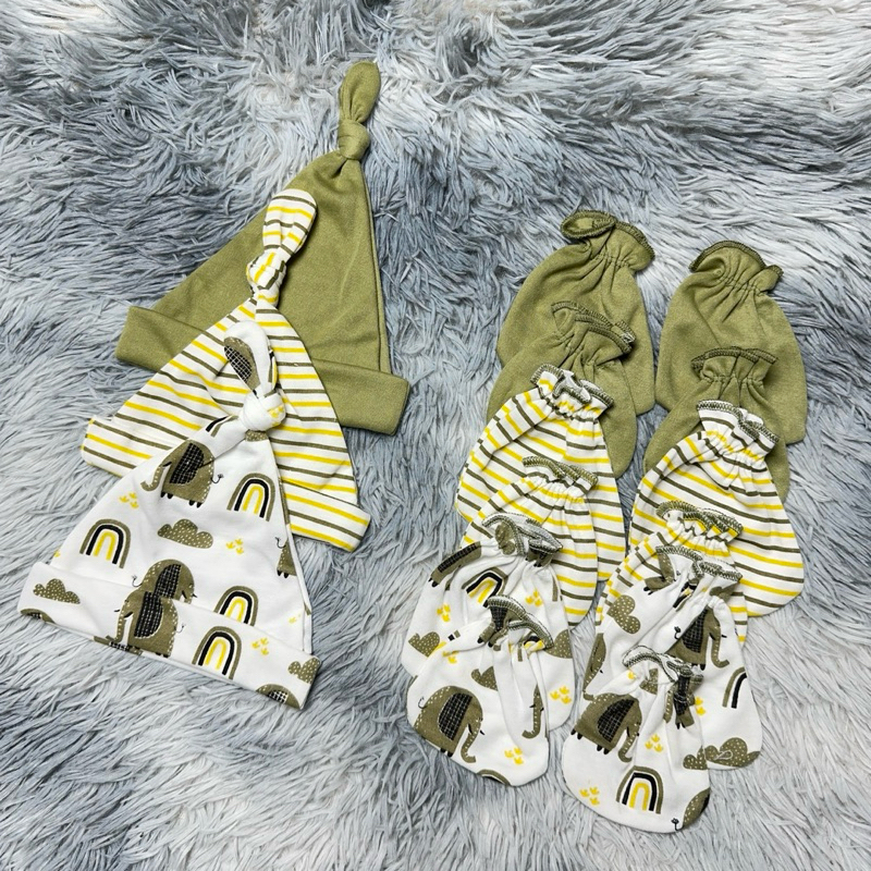 SNI - Set Bedong Sartaki & Topi Bayi Series HIJAU GAJAH / 3 Set Sarung Tangan Sarung Kaki Topi / 3 Pcs Bedong Jumbo - Az