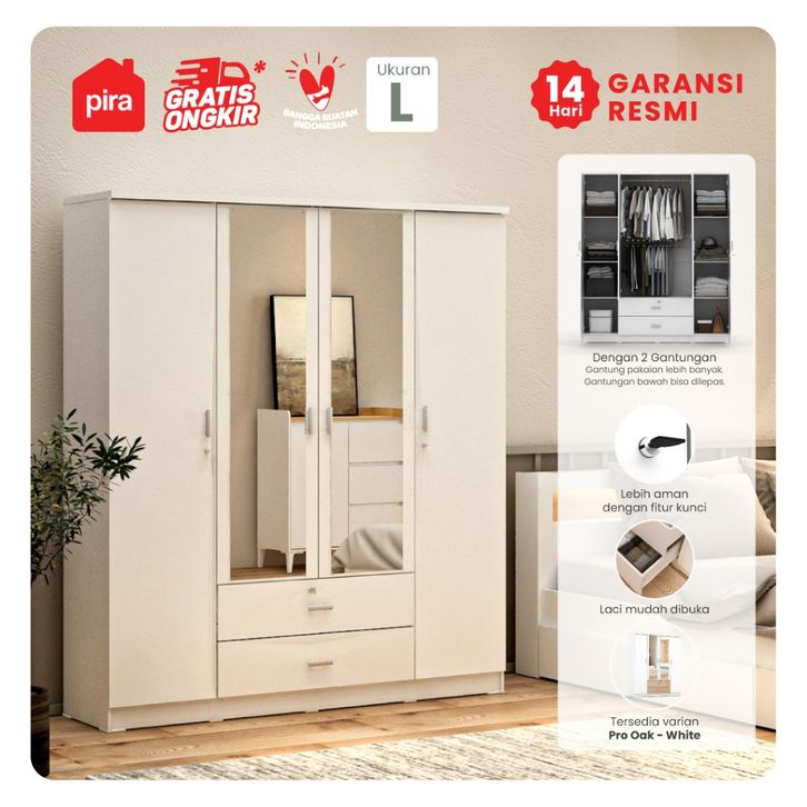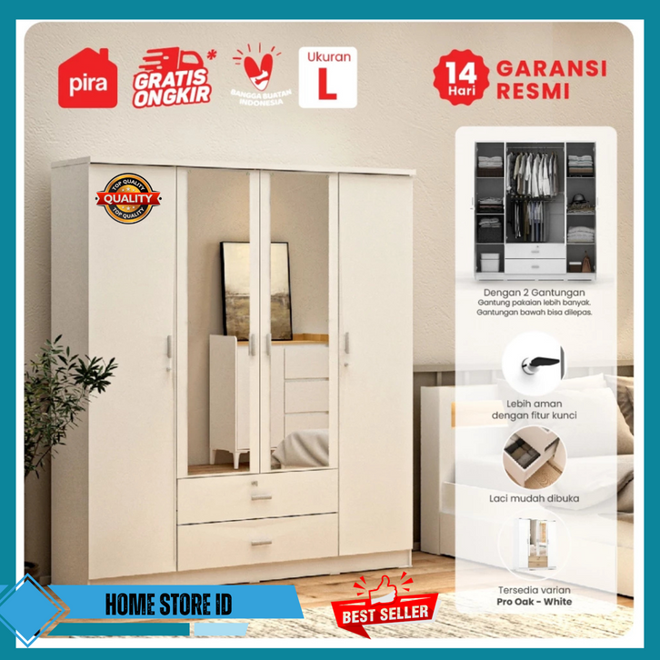 LEMARI PAKAIAN PIRA OX-ASTA 4PL A LEMARI BAJU 4 PINTU DENGAN LACI LEMARI KAYU LEMARI PLASTIK BERKUALITAS FREE ONGKIR