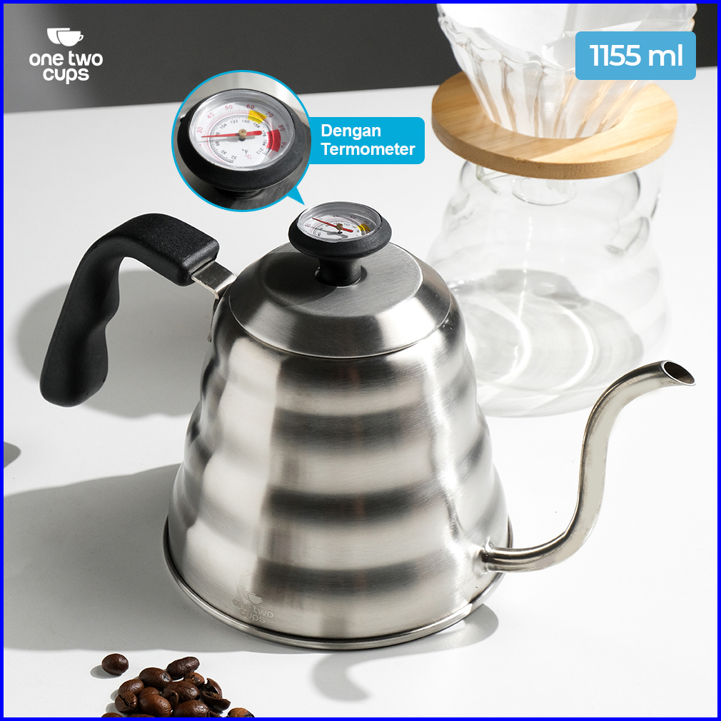One Two Cups Coffee Maker Pot Drip Kettle Teko Barista Leher Angsa With Thermometer - 1155ml
