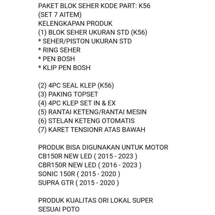 Blok Seher K56 (Set 7 Aitem) Cb150R New Led, Cbr150R New Led, Sonic 150R, Gtr 150, Ori Lokal