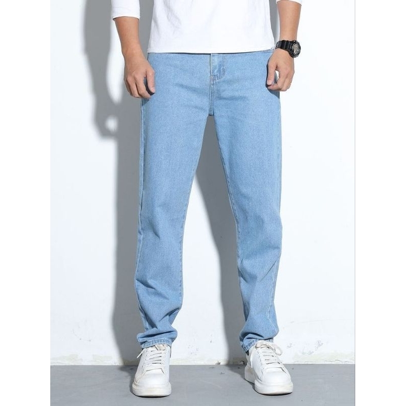 Celana Jeans Standart Denim Pria Lurus Longgar