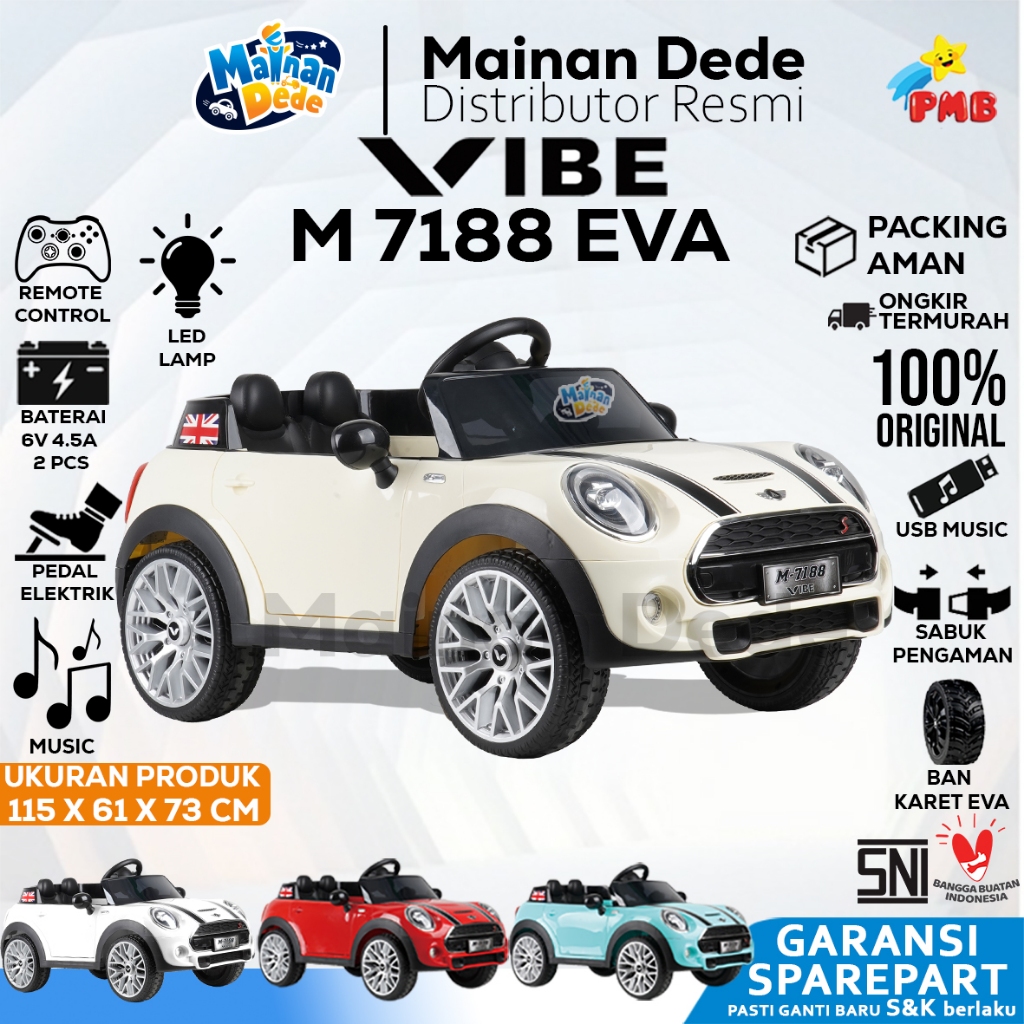 Mainan Mobil Aki Anak PMB 7188 Mortein Mini Cooper M-7188 M7188 VIBE Ban Karet