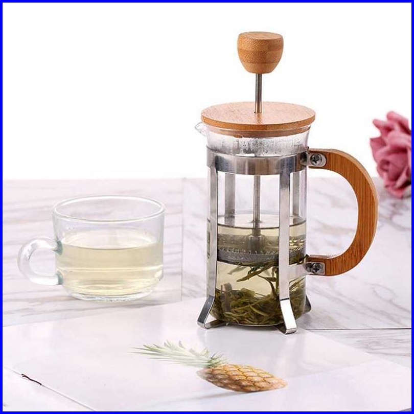 One Two Cups French Press Coffee Maker Pot Gagang Kayu 350ml